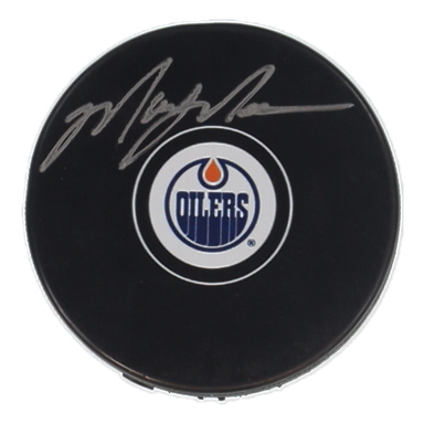 Mark Messier Signed Oilers Logo Hockey Puck (JSA)