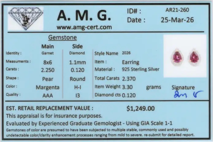 The item includes certification from AMG.