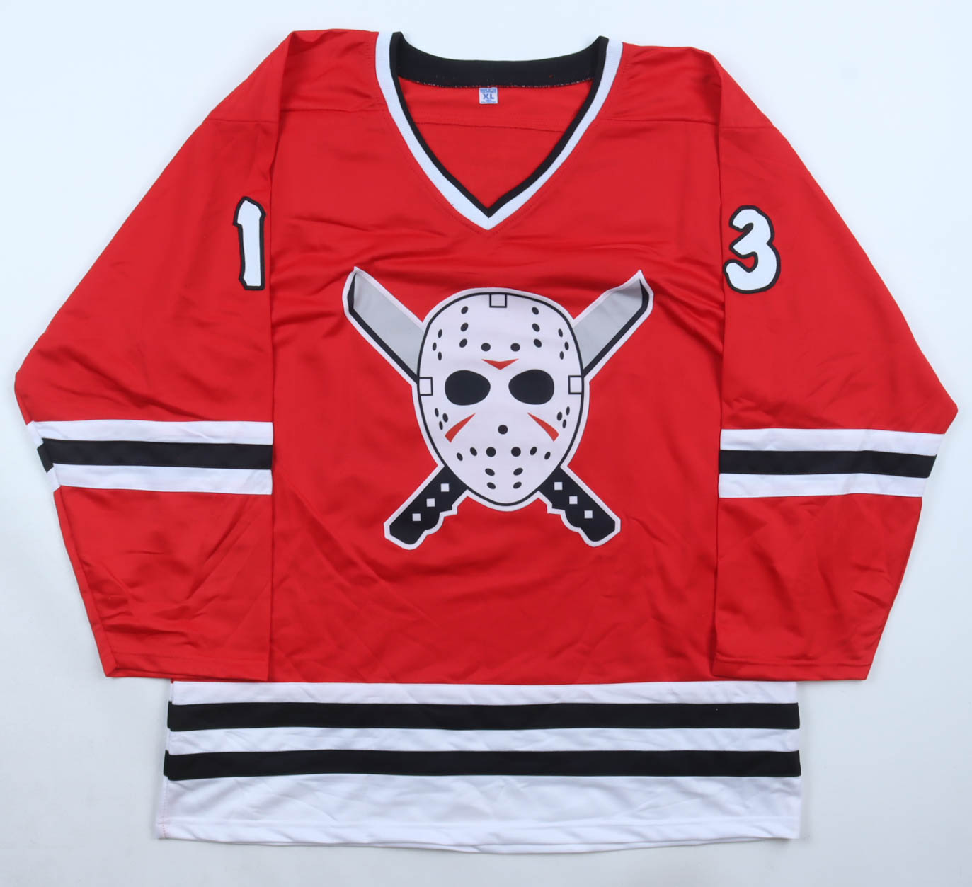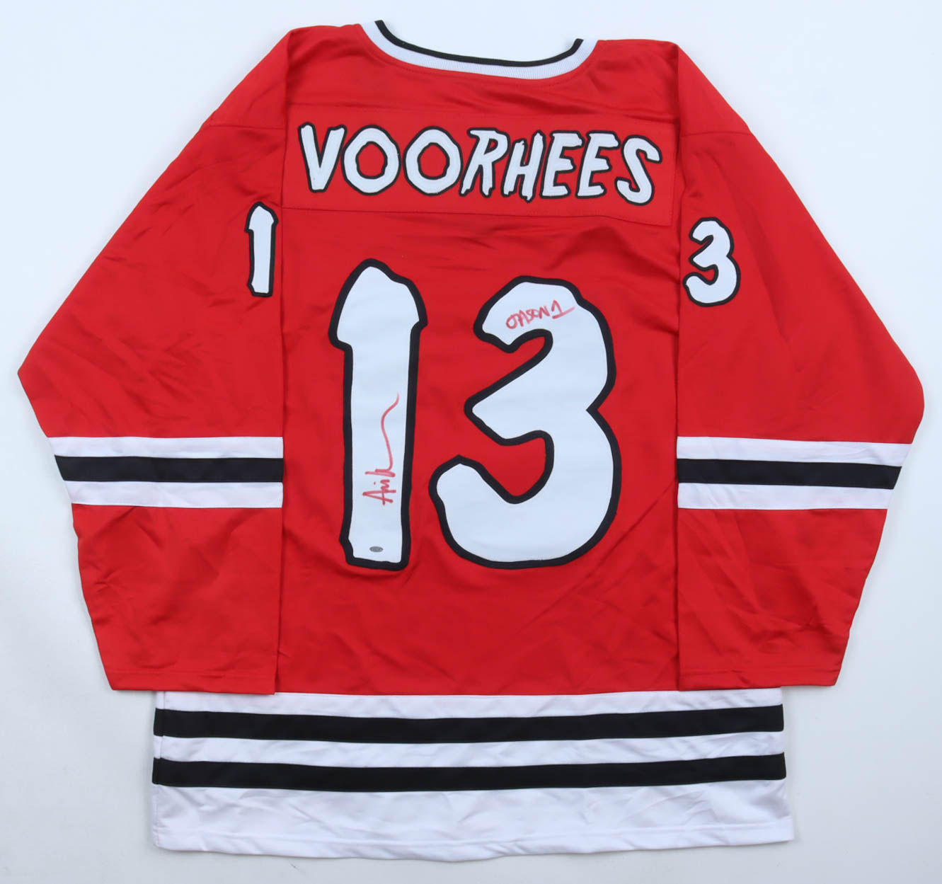 Custom jersey with everything sewn on, size XL. Hand-signed and inscribed by Ari Lehman (Jason Voorhees).