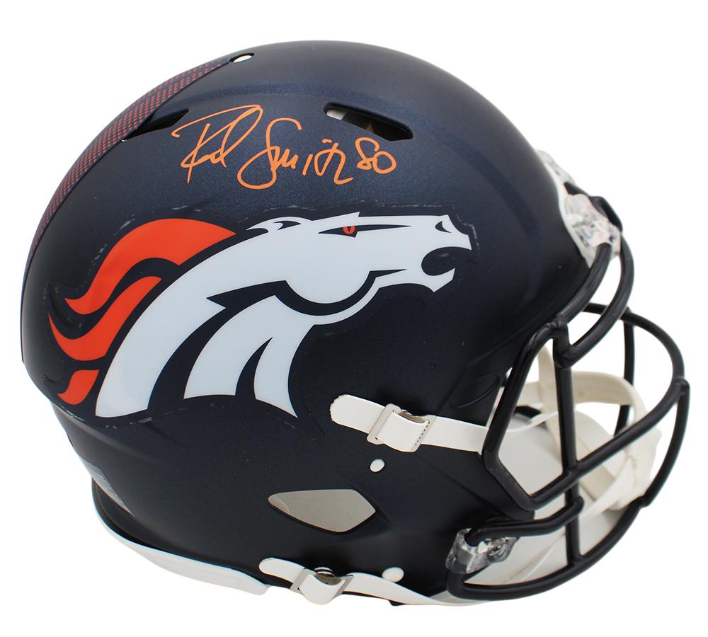 Riddell Denver Broncos full-size authentic on-field speed helmet. Hand-signed by Rod Smith.