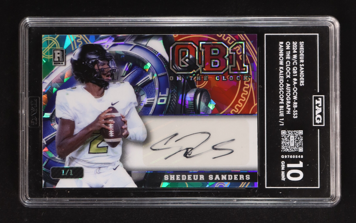 Shedeur Sanders 2024 Wild Card On The Clock Rainbow Kaleidoscope Blue Autograph #A-OCW-RB-SS3 RC #1/1 (TAG 10)