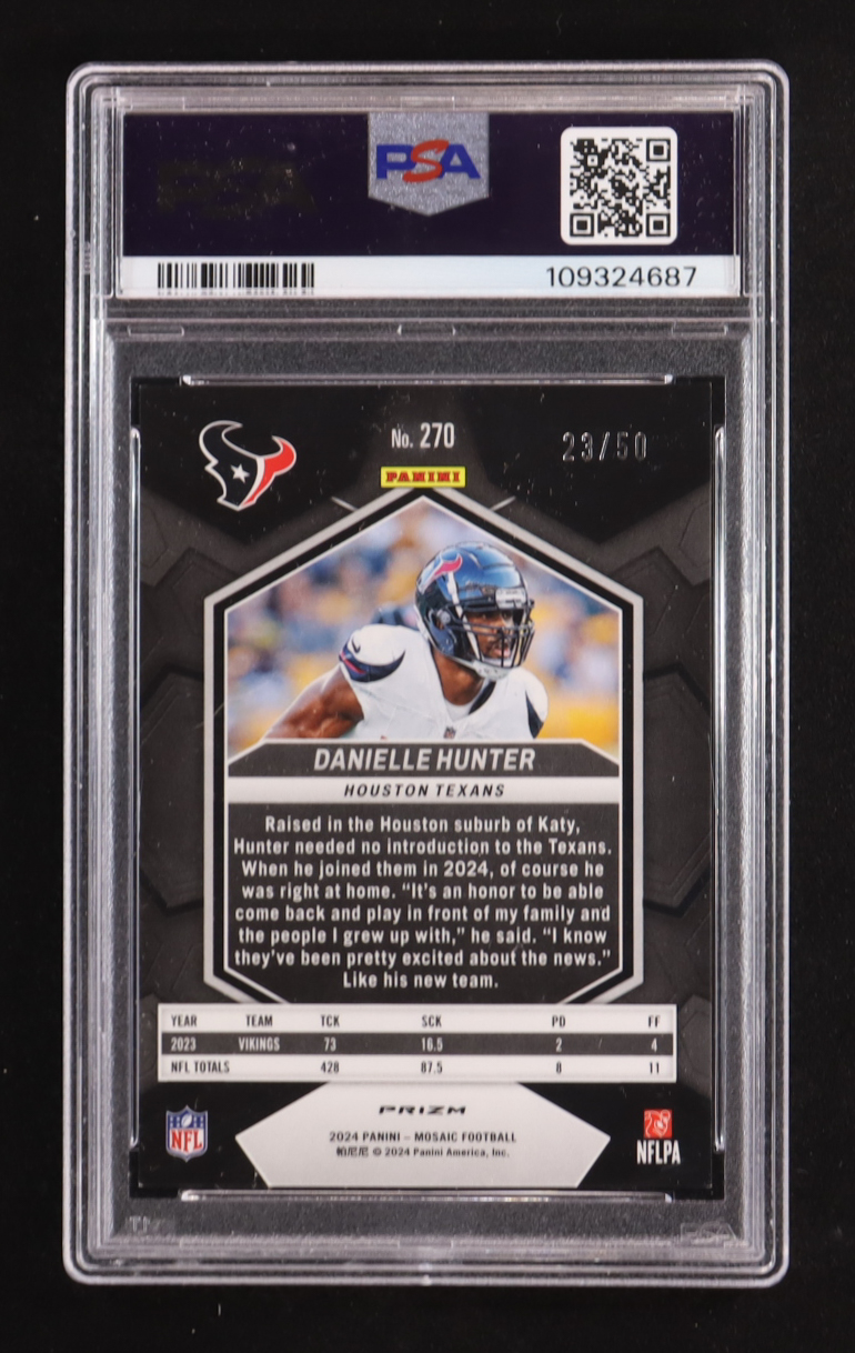 Danielle Hunter 2024 Panini Mosaic Purple No Huddle National Pride #270 #23/50 (PSA 8)