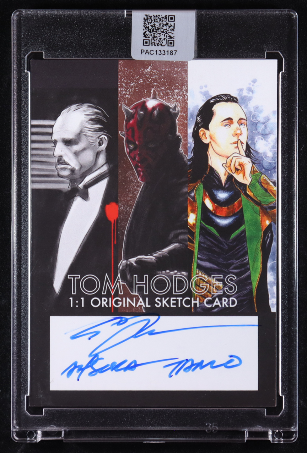 This original sketch card includes original art by renowned comic book artist, Tom Hodges. Also includes a character name inscription on the back by the artist.