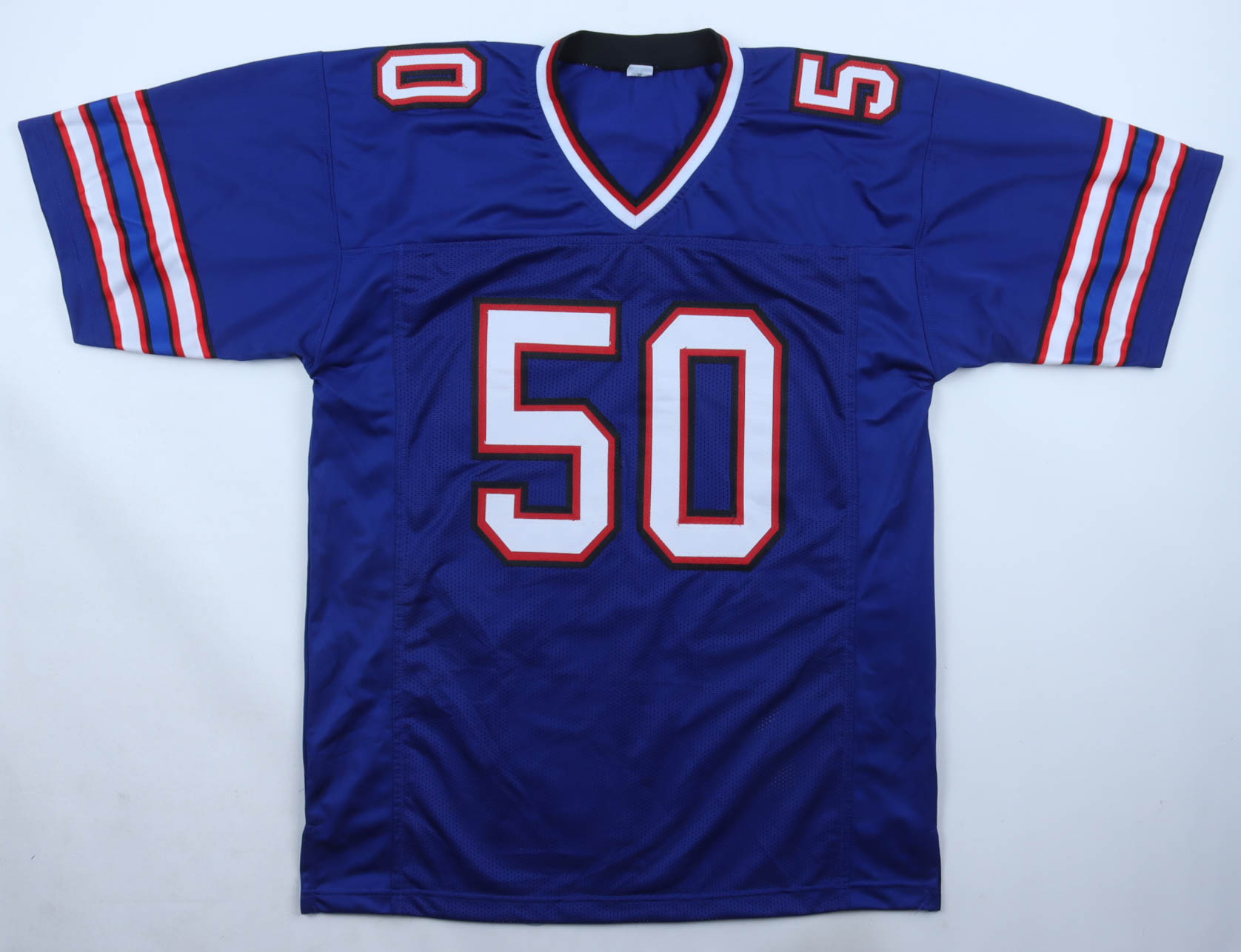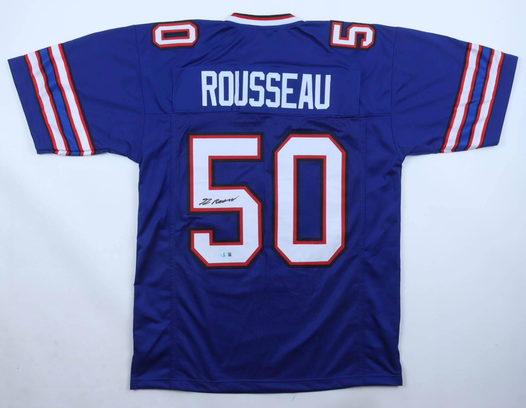 Custom jersey with everything sewn on, size XL. Hand-signed by Gregory Rousseau.
