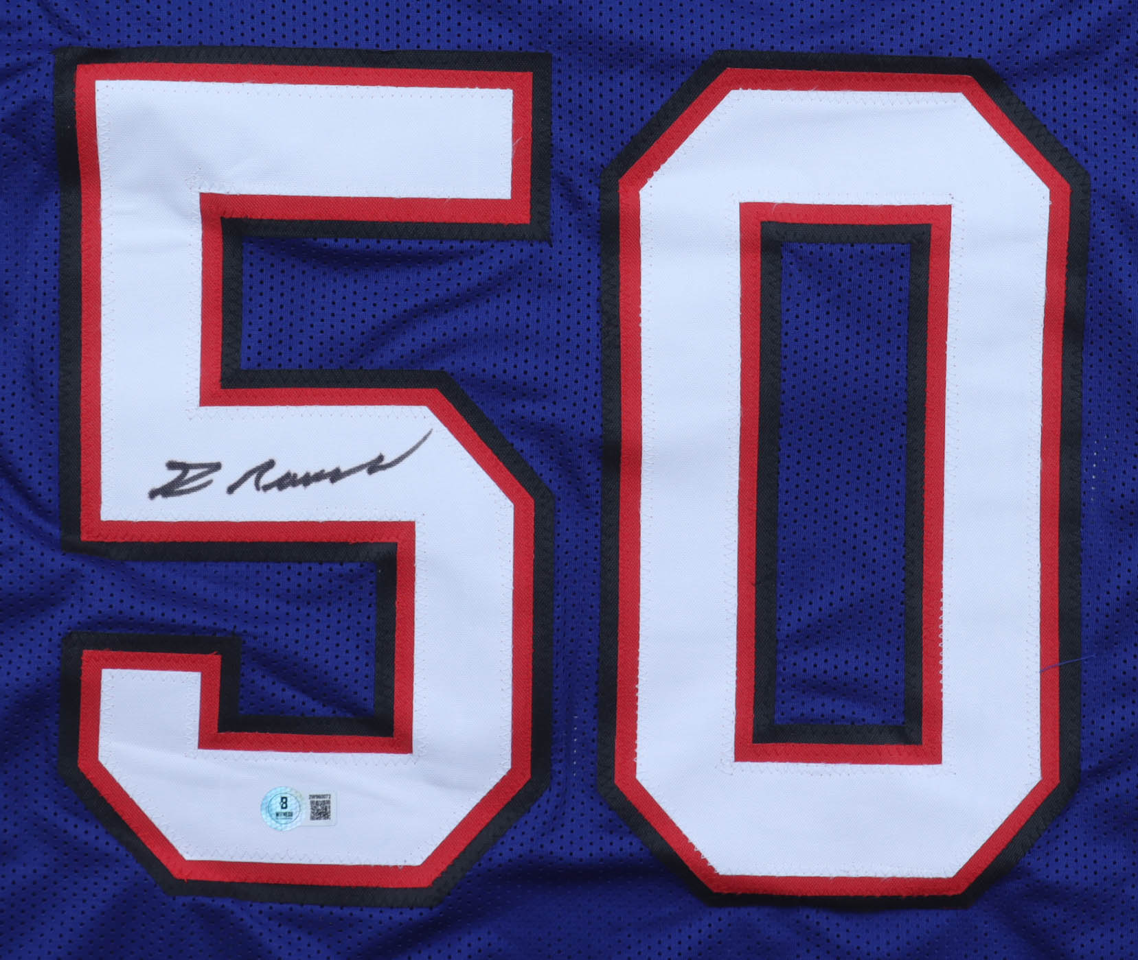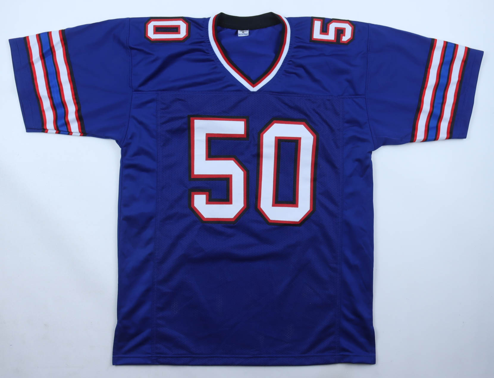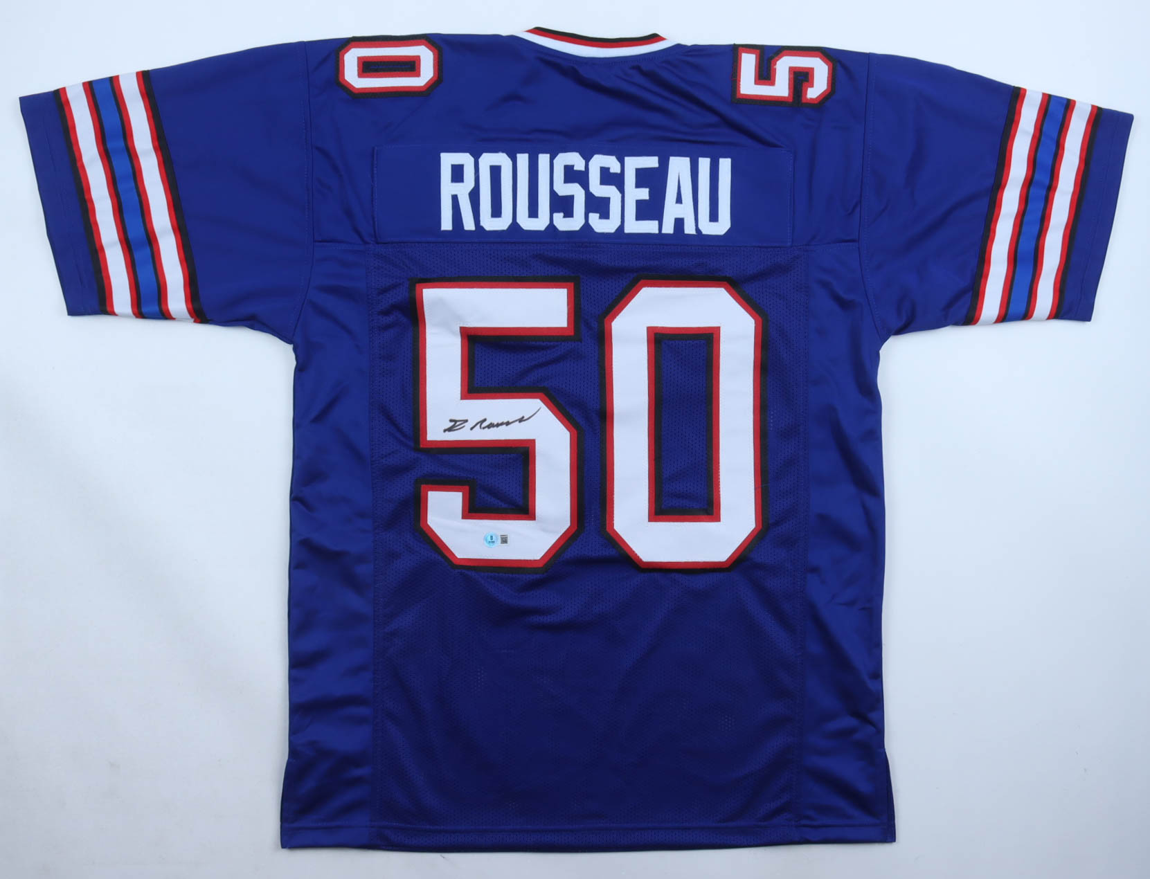 Custom jersey with everything sewn on, size XL. Hand-signed by Gregory Rousseau.