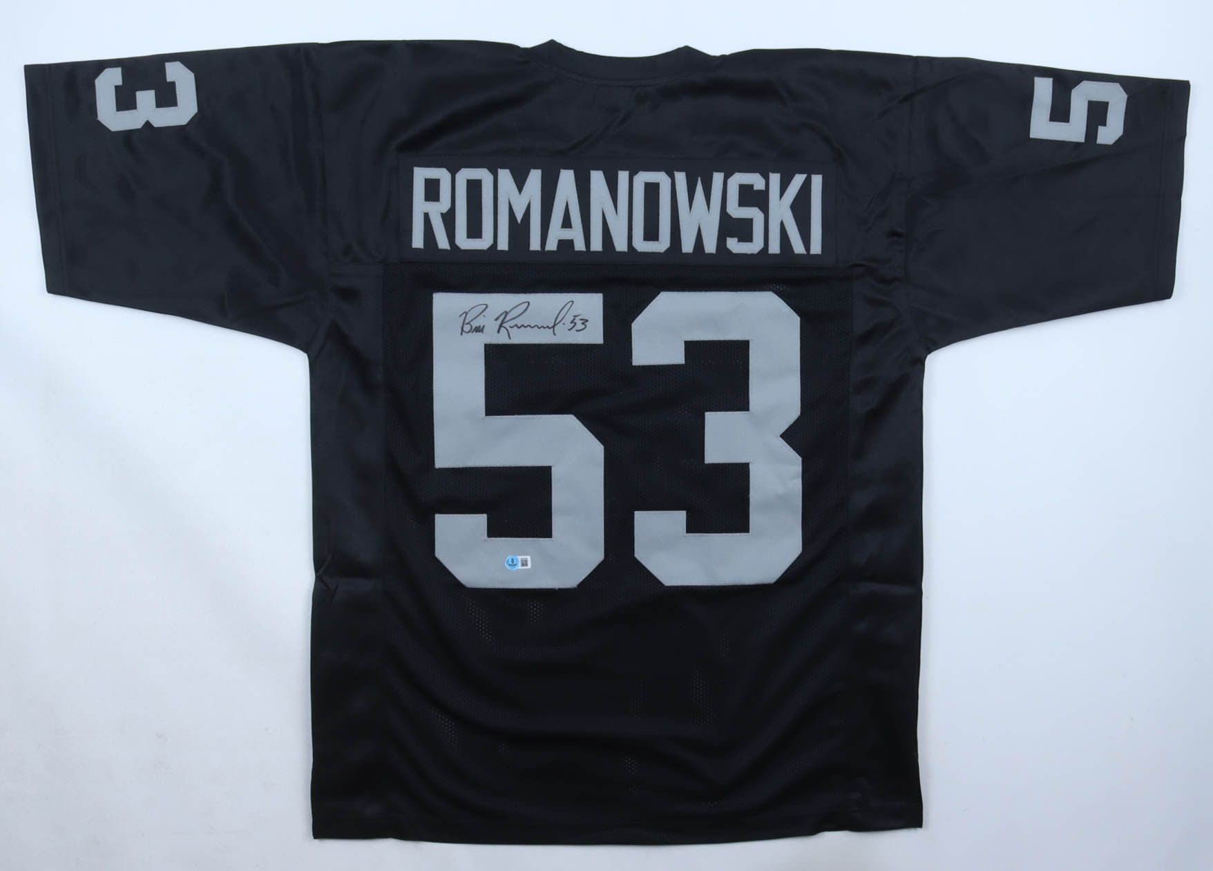 Custom jersey with everything sewn on, size XL. Hand-signed by Bill Romanowski.