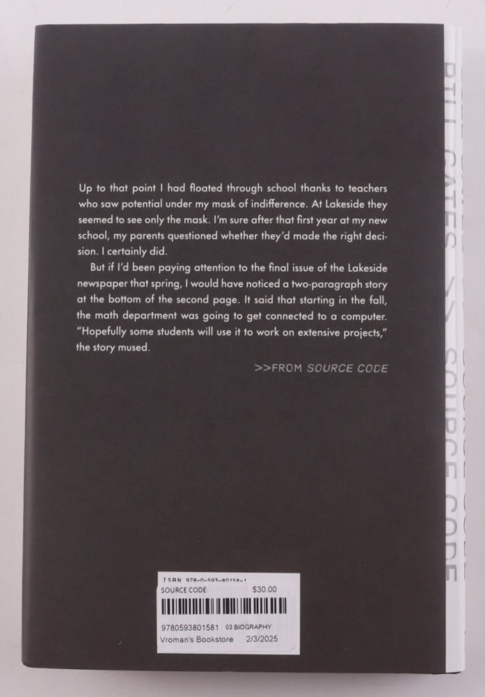 Bill Gates Signed "Source Code: My Beginnings" First Edition Hardcover Book (PBA)