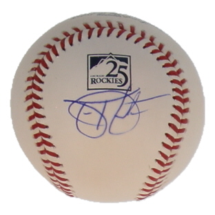Rawlings Official Major League Colorado Rockies 25th Anniversary logo baseball has been hand-signed by Todd Helton (Colorado Rockies, HOF).