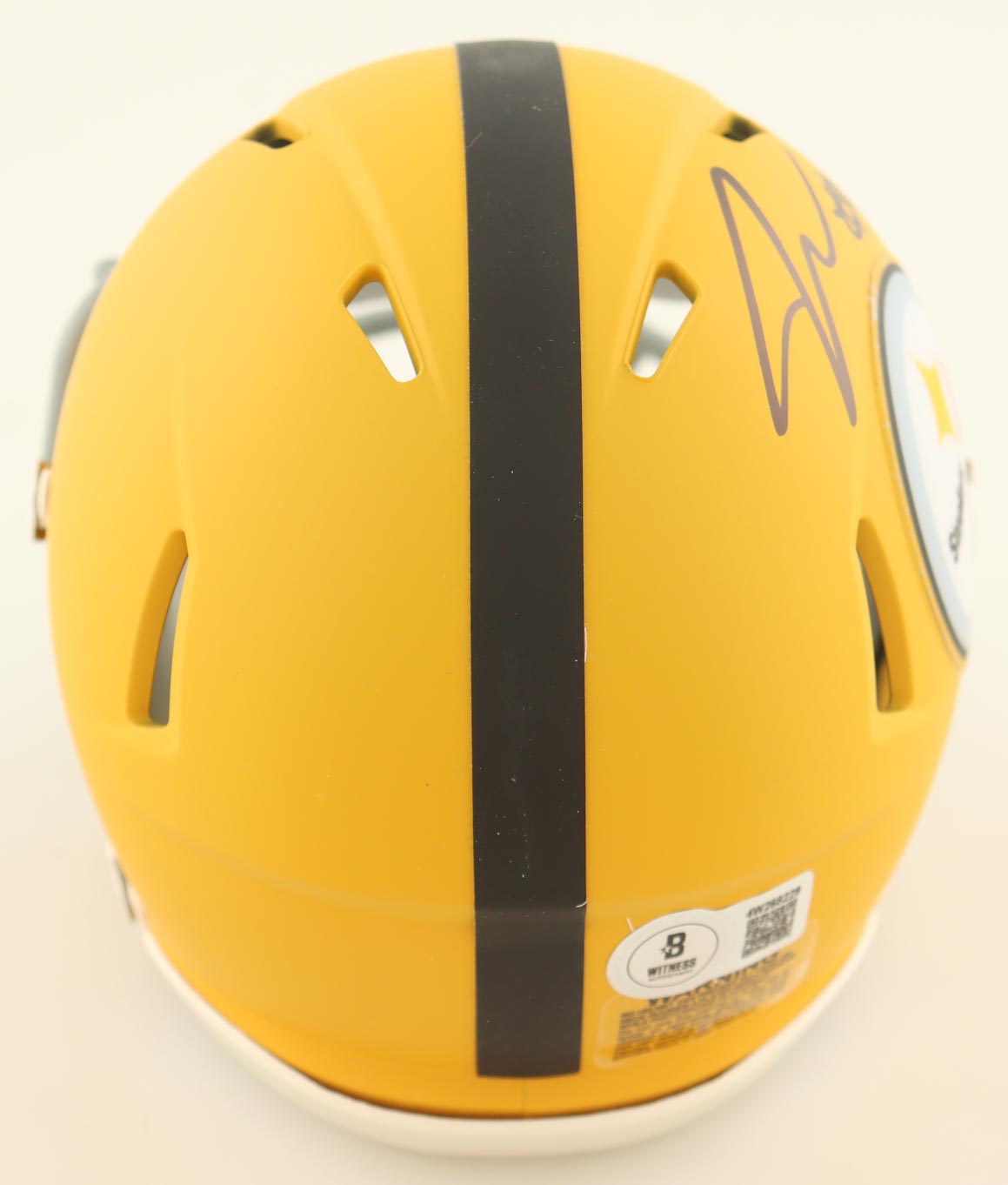 Riddell Pittsburgh Steelers Speed mini helmet has been hand-signed by Jaylen Warren.
