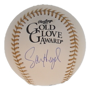 Rawlings Official Gold Glove Award Logo Baseball. Hand-signed by Jason Heyward (Chicago Cubs).
