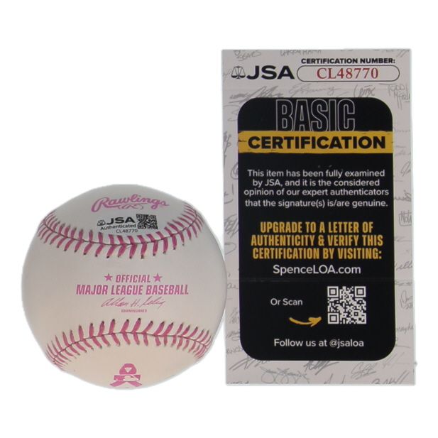 Rawlings Official Major League breast cancer awareness logo baseball. Hand-signed by Lance Lynn (St. Louis Cardinals).