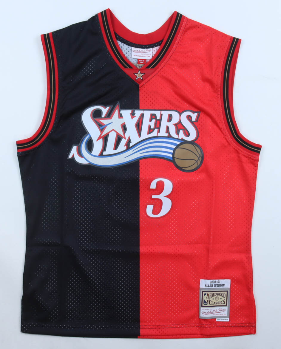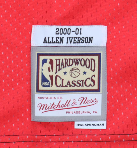 Mitchell & Ness jersey with everything pressed on, size L. Hand-signed by Allen Iverson (Philadelphia 76ers, HOF).