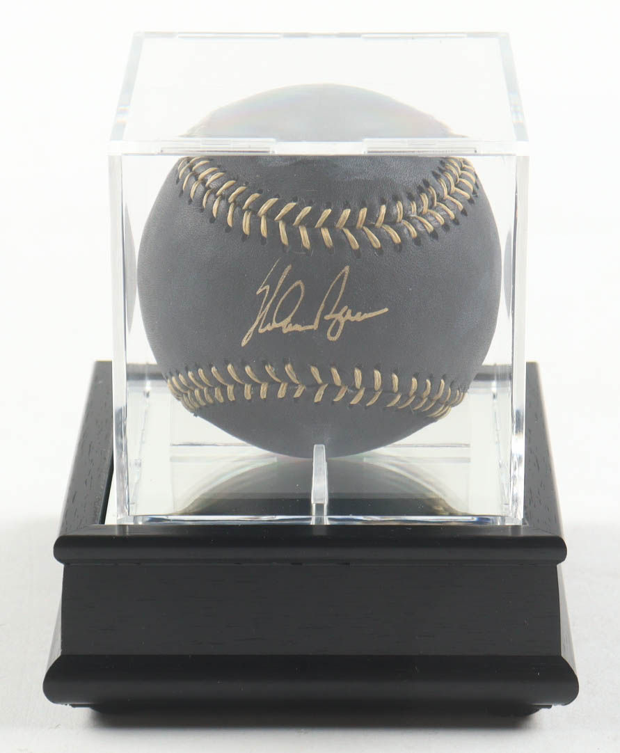 Rawlings Black Leather Official Major League Baseball. Hand-signed by Nolan Ryan (Houston Astros, HOF). Display case included as shown.