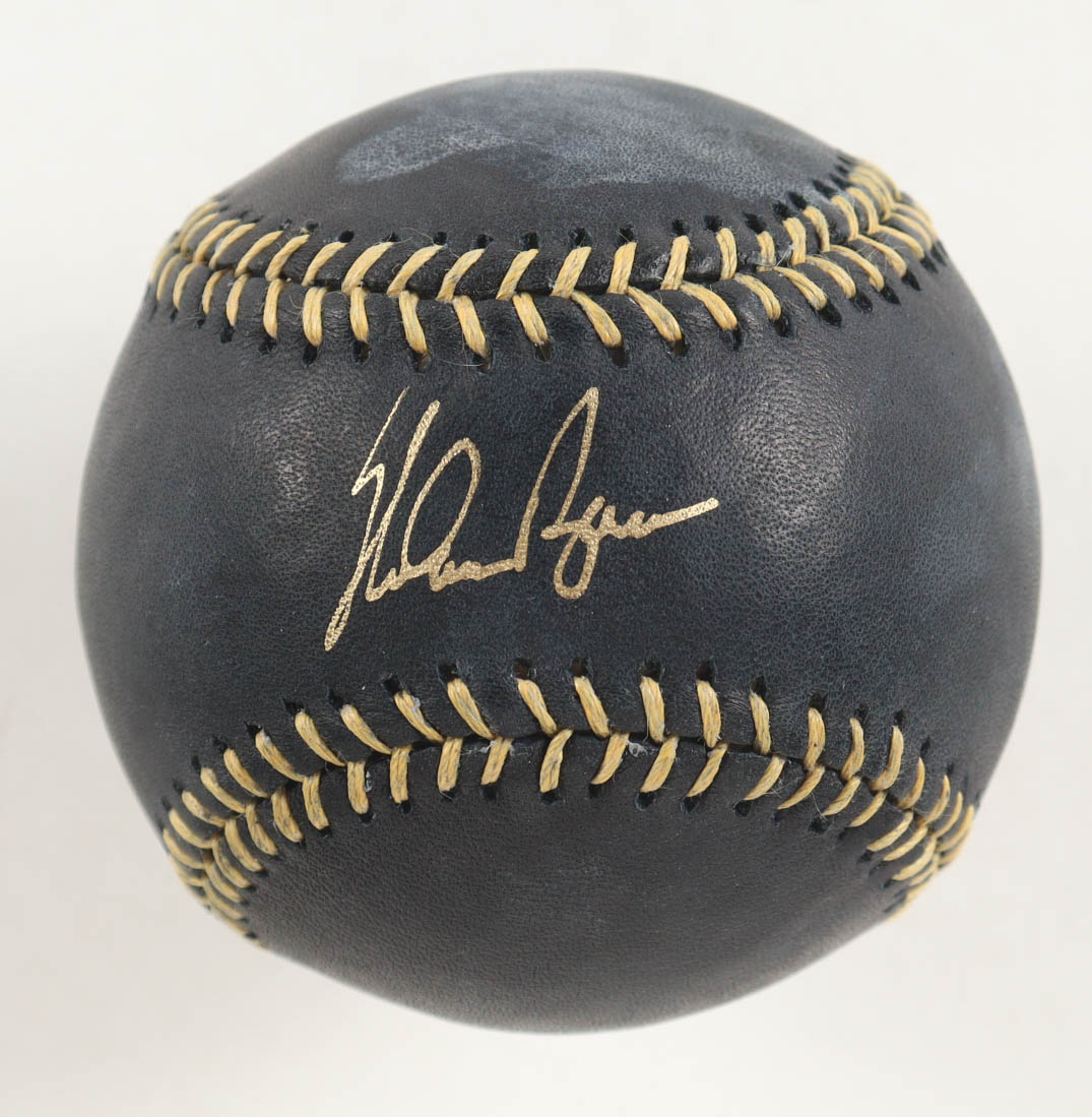 Nolan Ryan Signed Black Leather OML Baseball In Display Case (PSA)