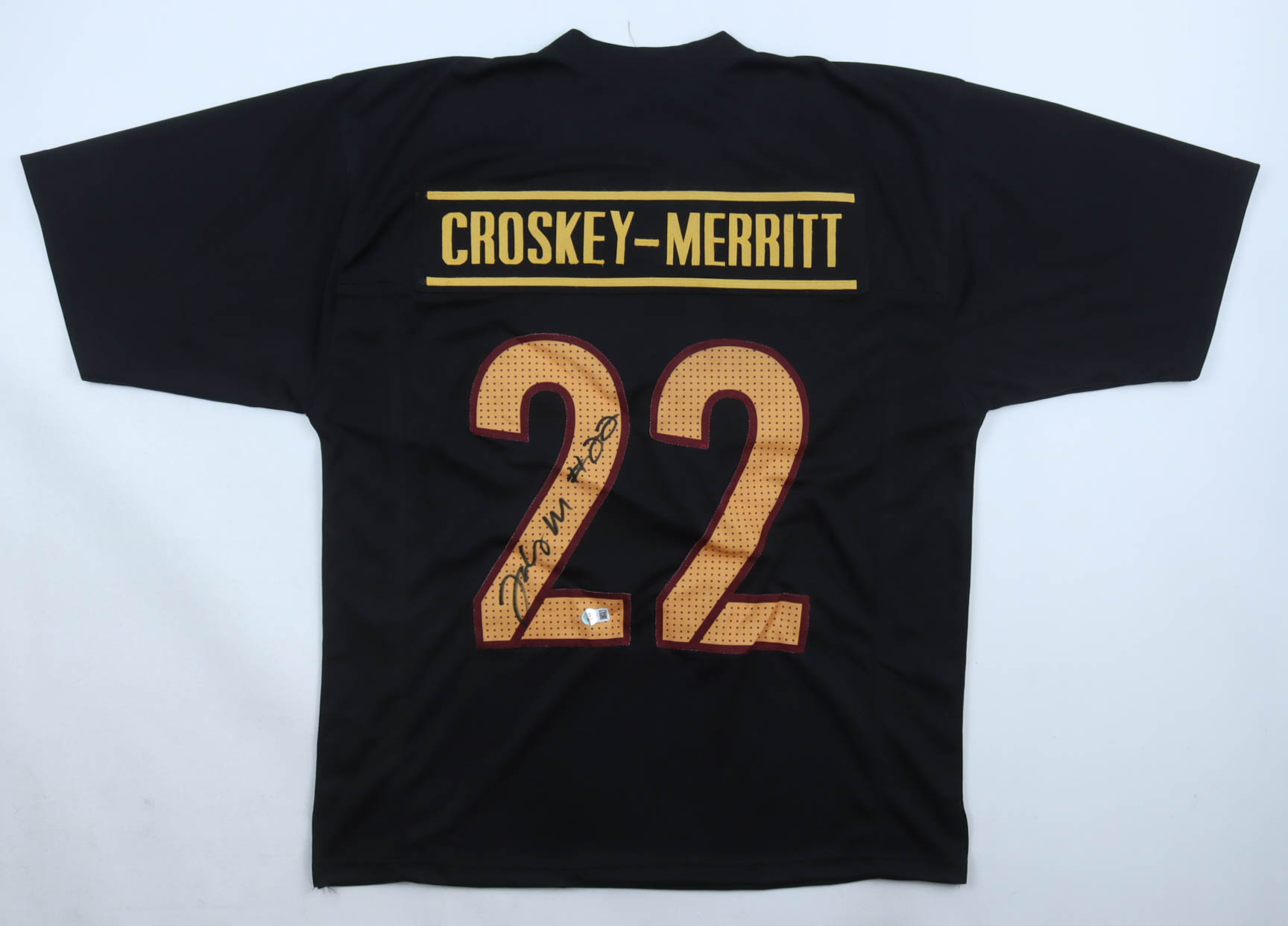 Custom jersey with everything sewn on, size XL. Hand-signed by Jacory Croskey-Merritt.