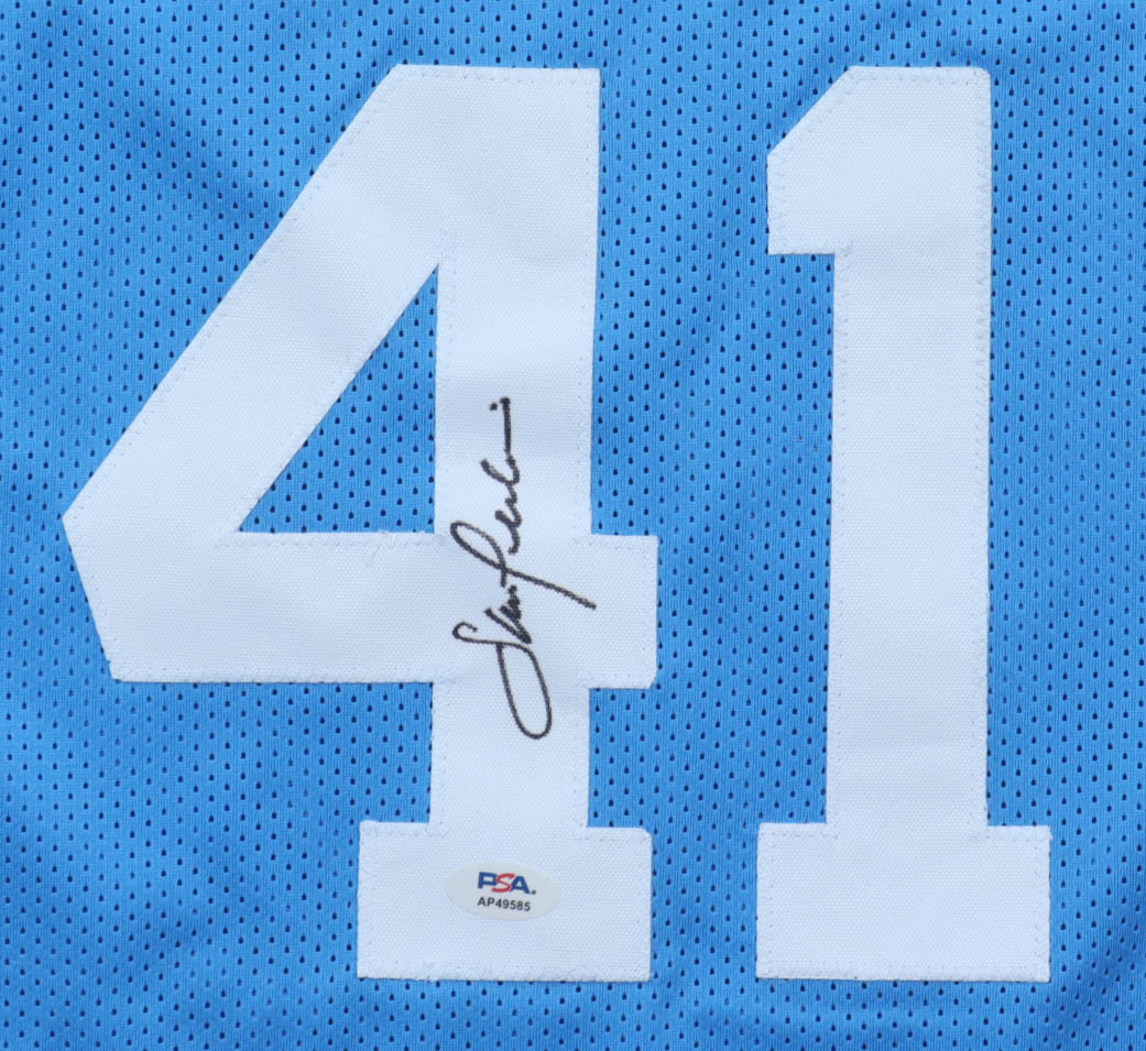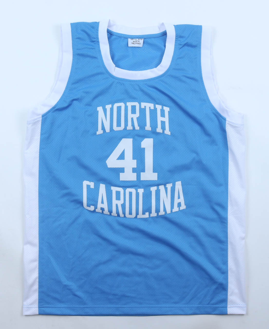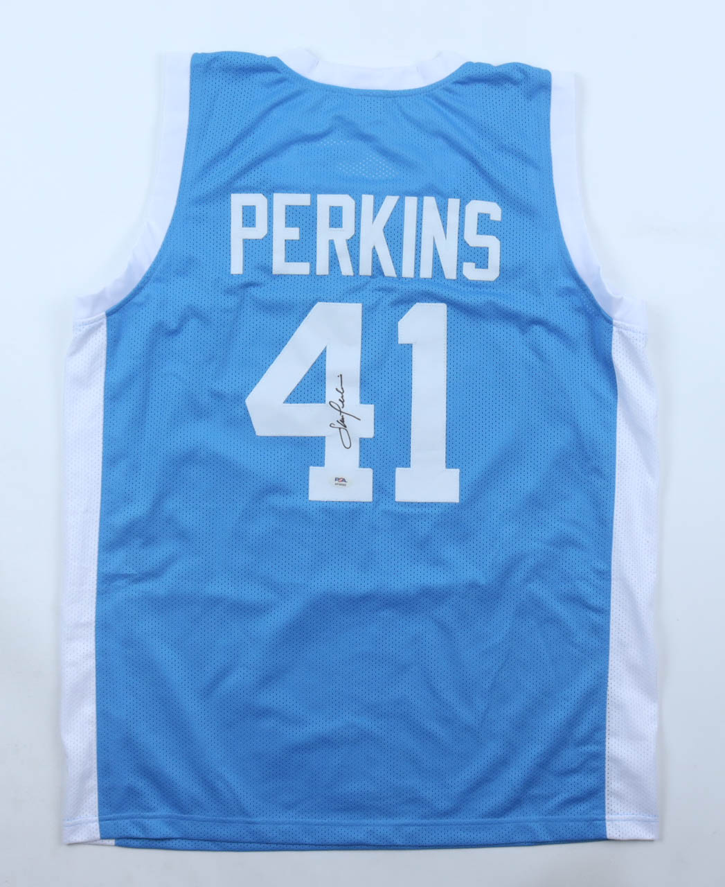 Custom jersey with everything sewn on, size XL. Hand-signed by Sam Perkins.