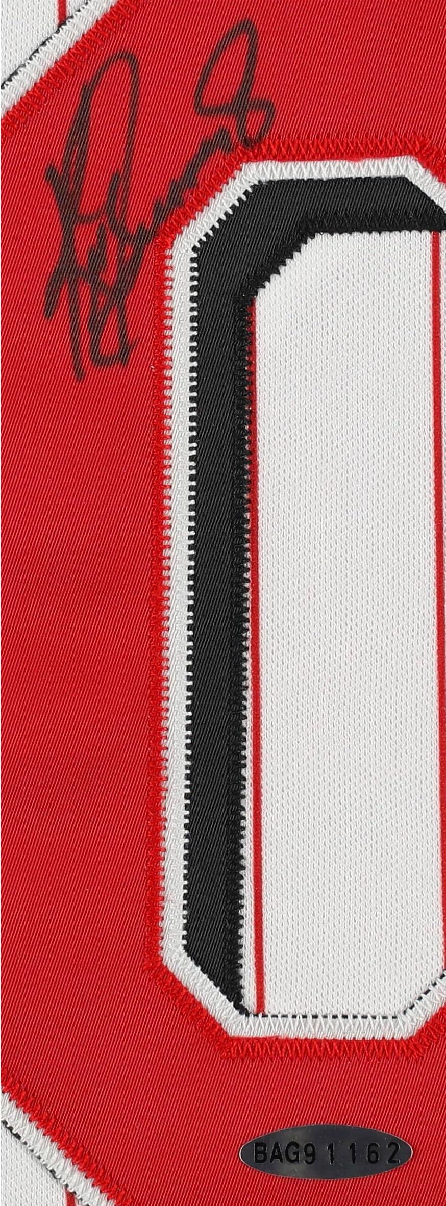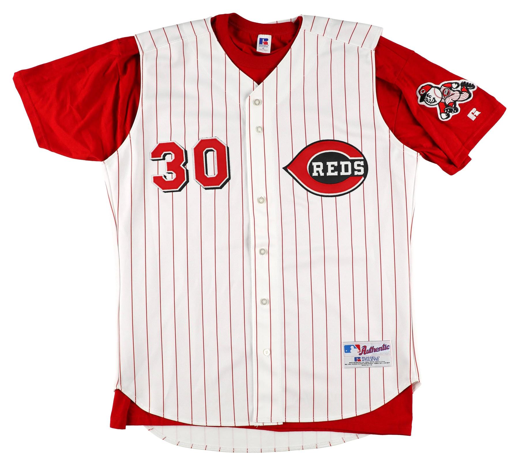 Russell jersey with everything sewn on, size 40. Hand-signed by Ken Griffey Jr. (Cincinnati Reds, HOF).