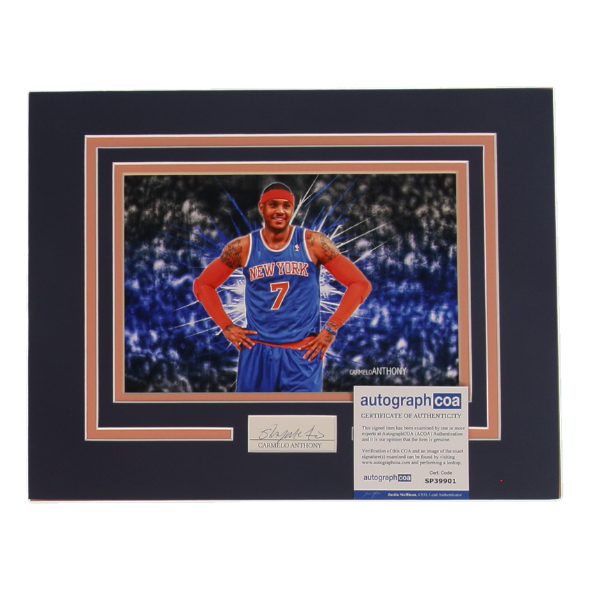 Carmelo Anthony Signed Knicks 11x14 Custom Matted Cut Display (ACOA)