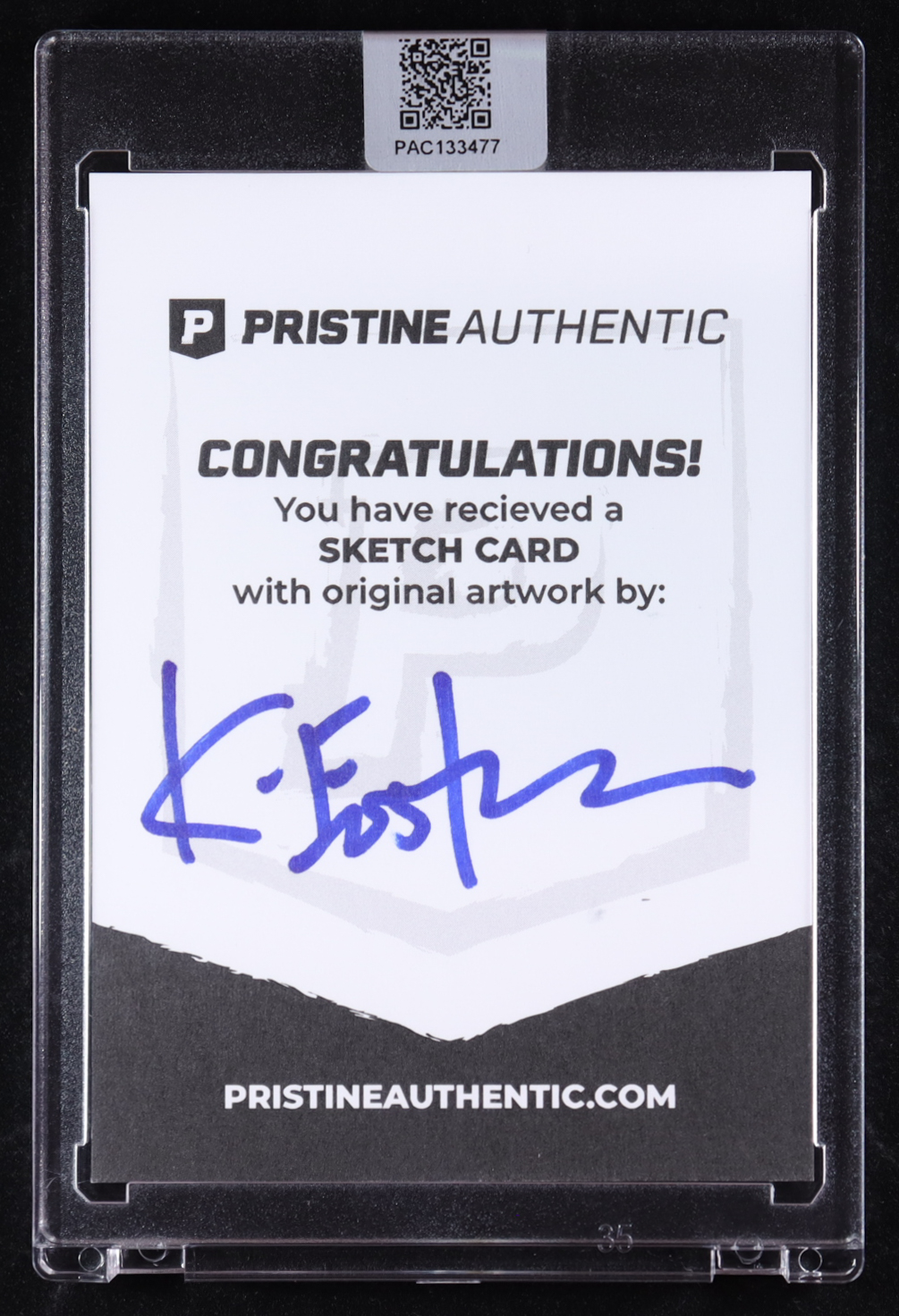 This sketch card includes original art by the co-creator of the Teenage Mutant Ninja Turtles, Kevin Eastman. The card is hand-signed on the back by Eastman.