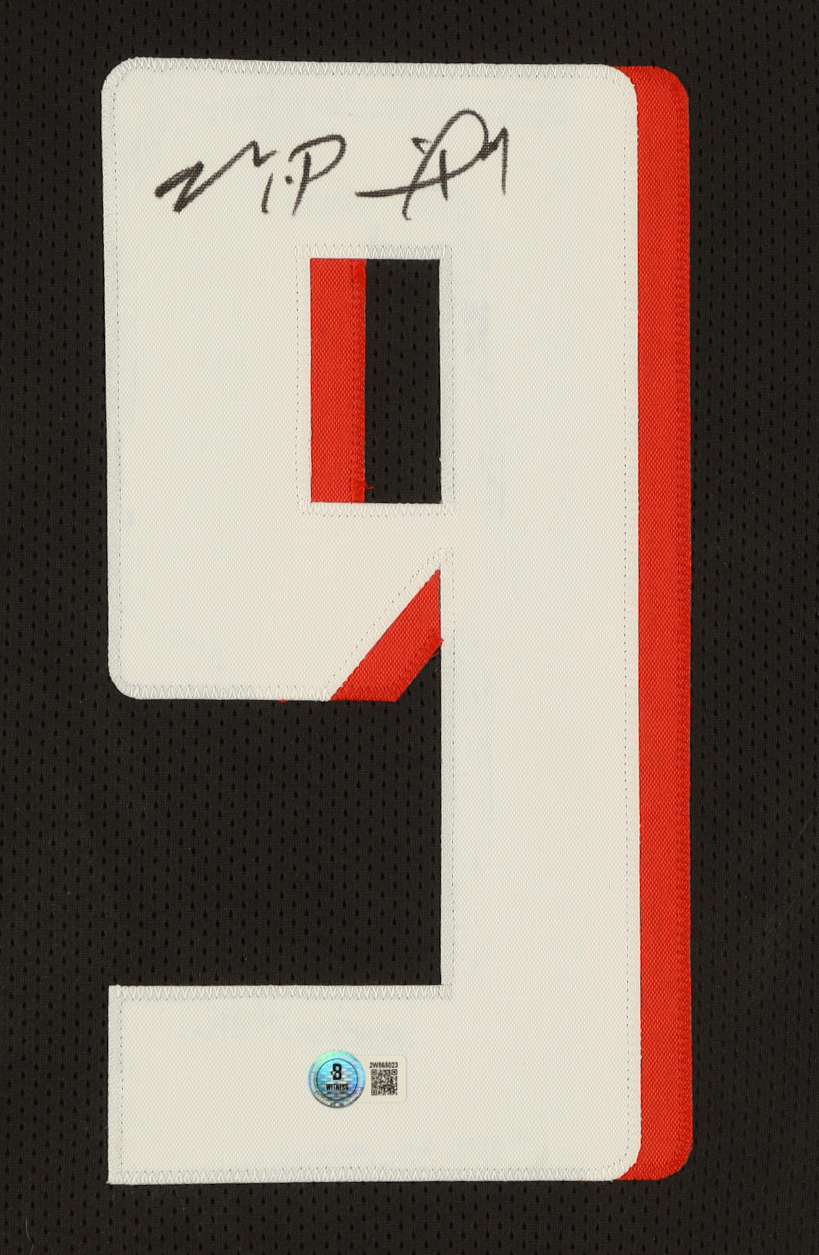 Custom frame measures approximately 35" x 43" in size and features a jersey that has been hand-signed by Michael Penix Jr..