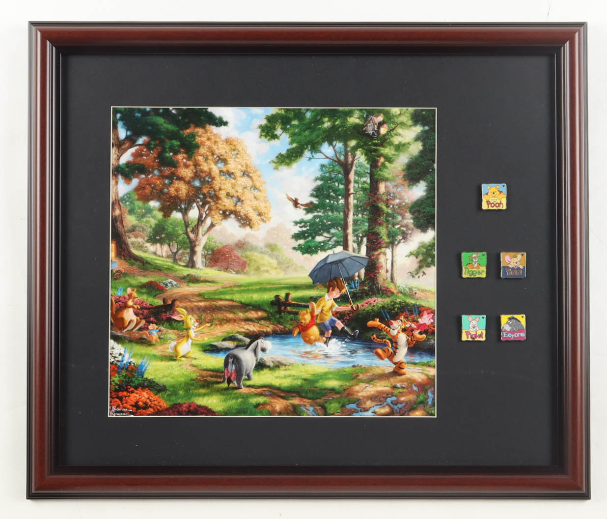 "Winnie The Pooh" by Thomas Kinkade Custom Framed Art Print Display with Set of (5) Winnie The Pooh Pins