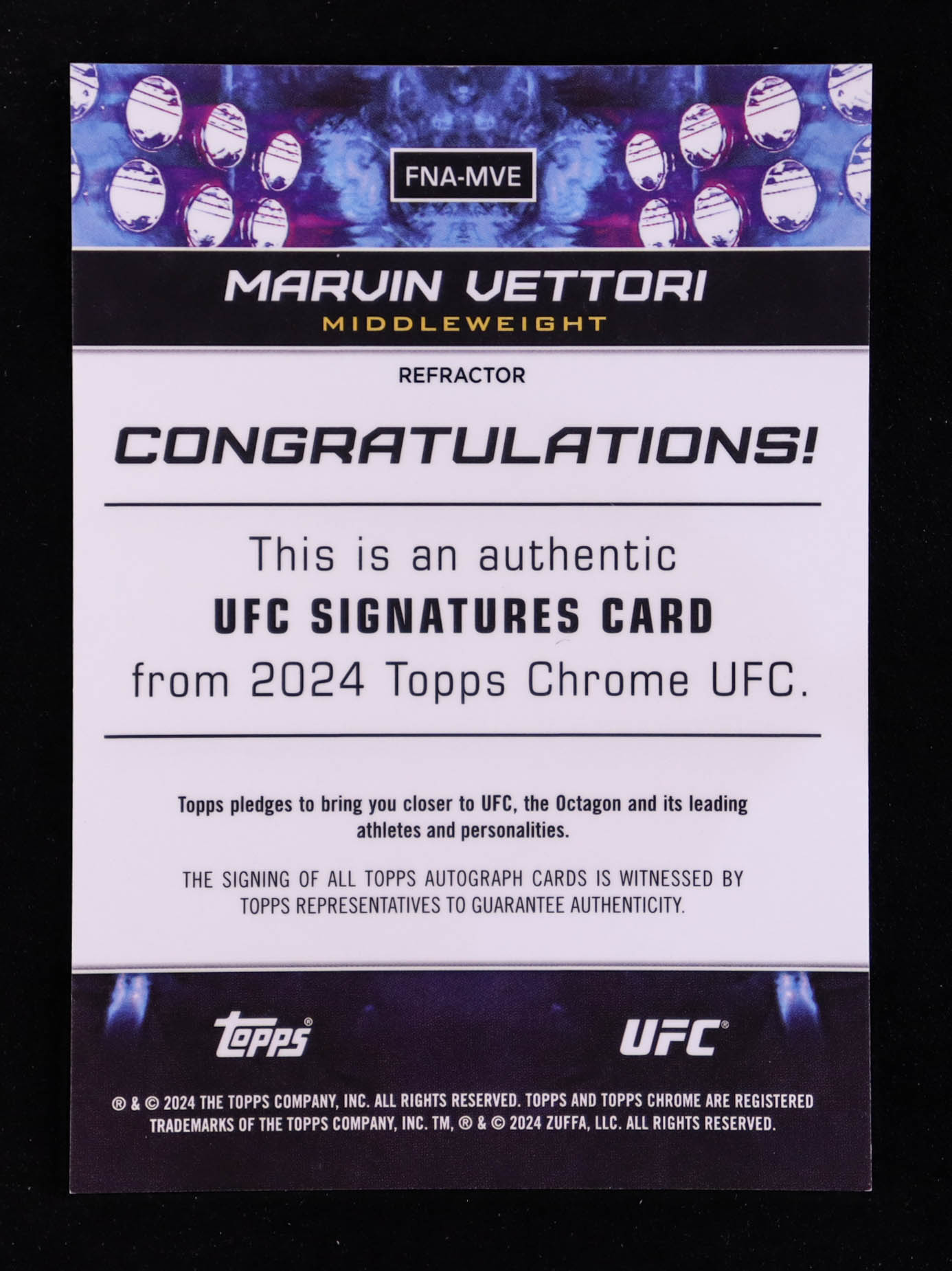 Marvin Vettori 2024 Topps Chrome UFC Signatures Refractors #FNAMVE #142/150