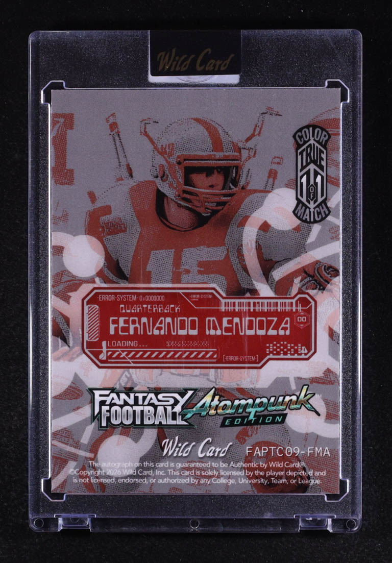 Fernando Mendoza 2026 Wild Card Atompunk Fantasy Football Autographs Prismatic Red #FAPTC09FMA RC #1/1
