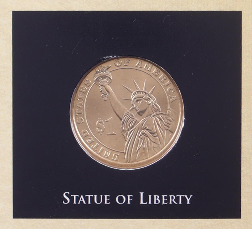 Collection features 2013 Woodrow Wilson 1$ dollar coin as well as (2) stamps issued in 1956 and 1985. See photos for more details on condition of the item.
