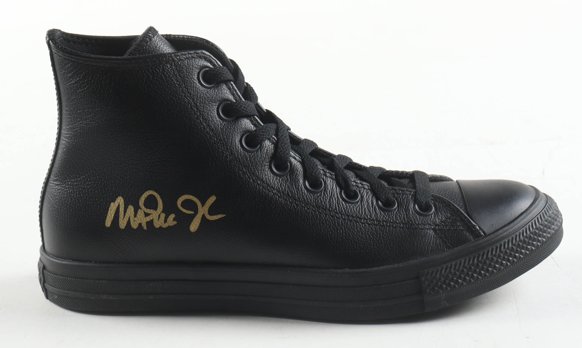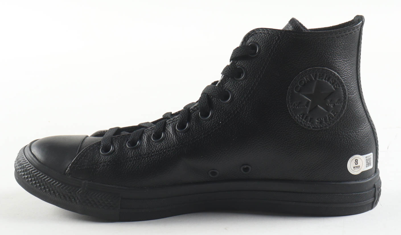 Converse All Star Black Leather Basketball Shoe. Hand-signed by Magic Johnson (Los Angeles Lakers, HOF). Display case included as shown. Please refer to photos for more details.
