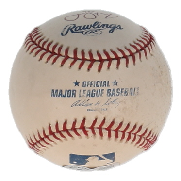 Please note, the baseball is stained and naturally toned, and the printing is scuffed. Refer to photos for more detail.