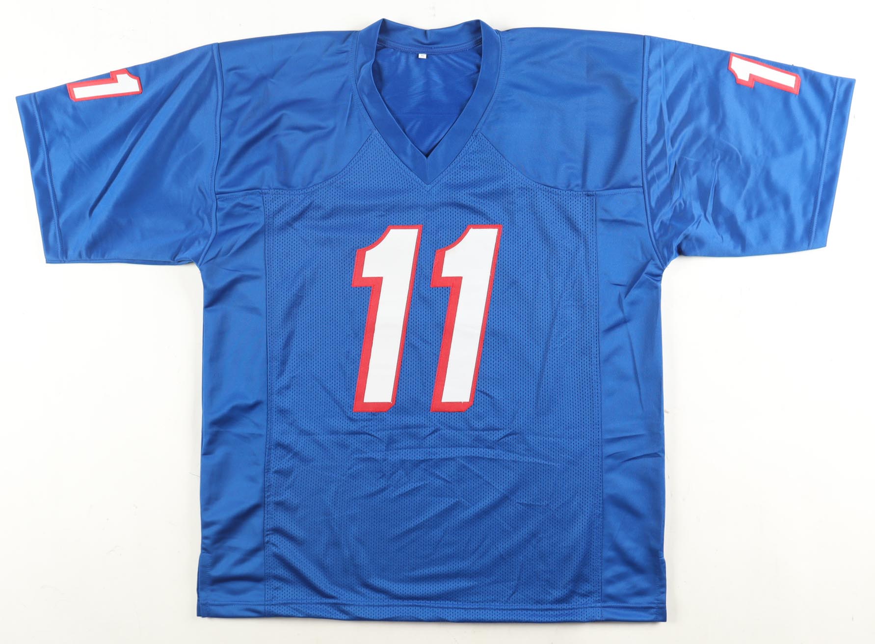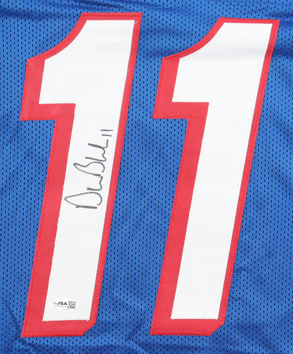 Custom jersey with everything sewn on, size XL. Hand-signed by Drew Bledsoe.