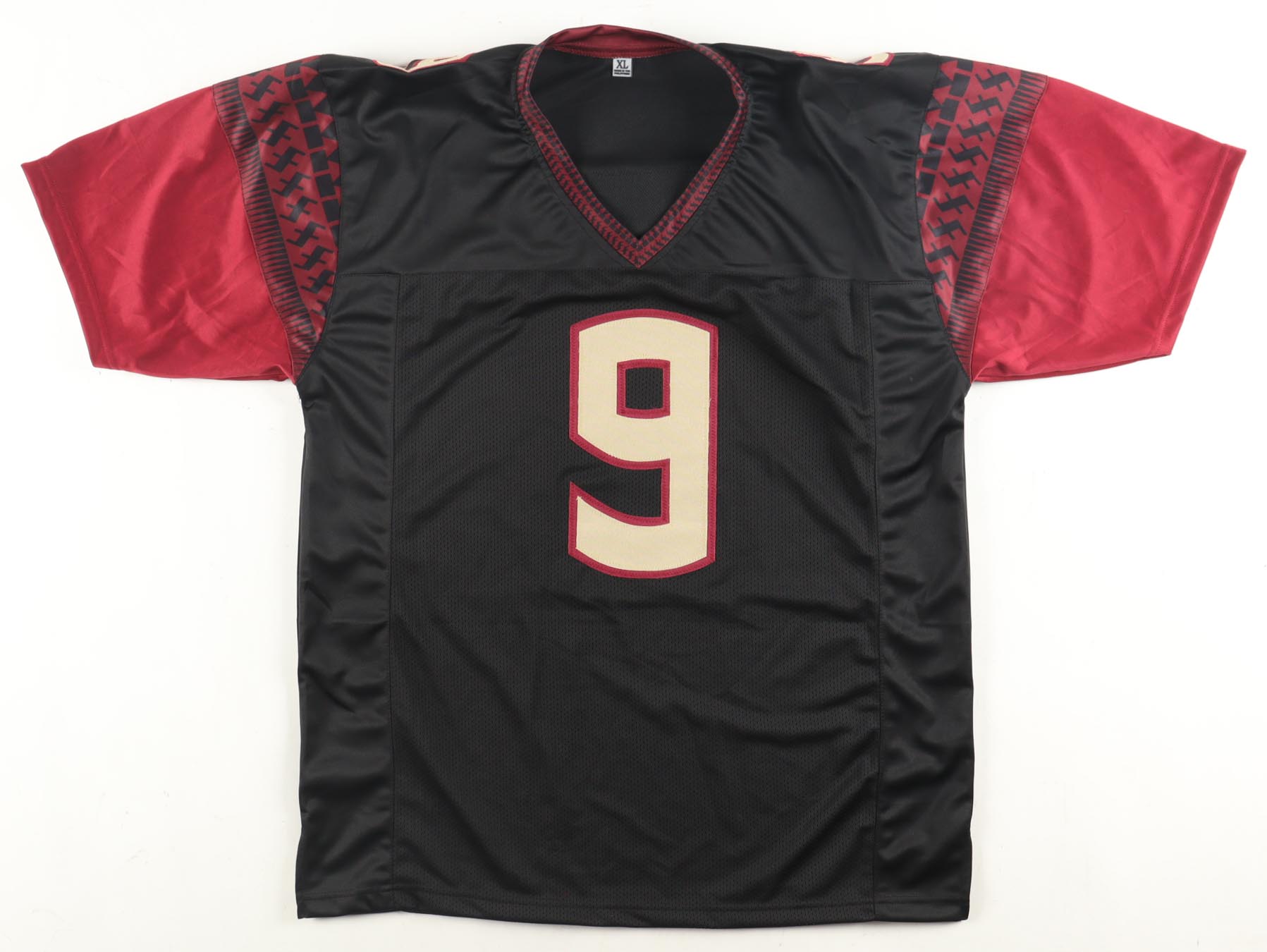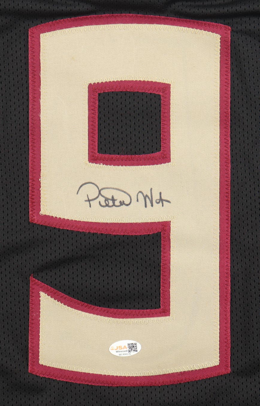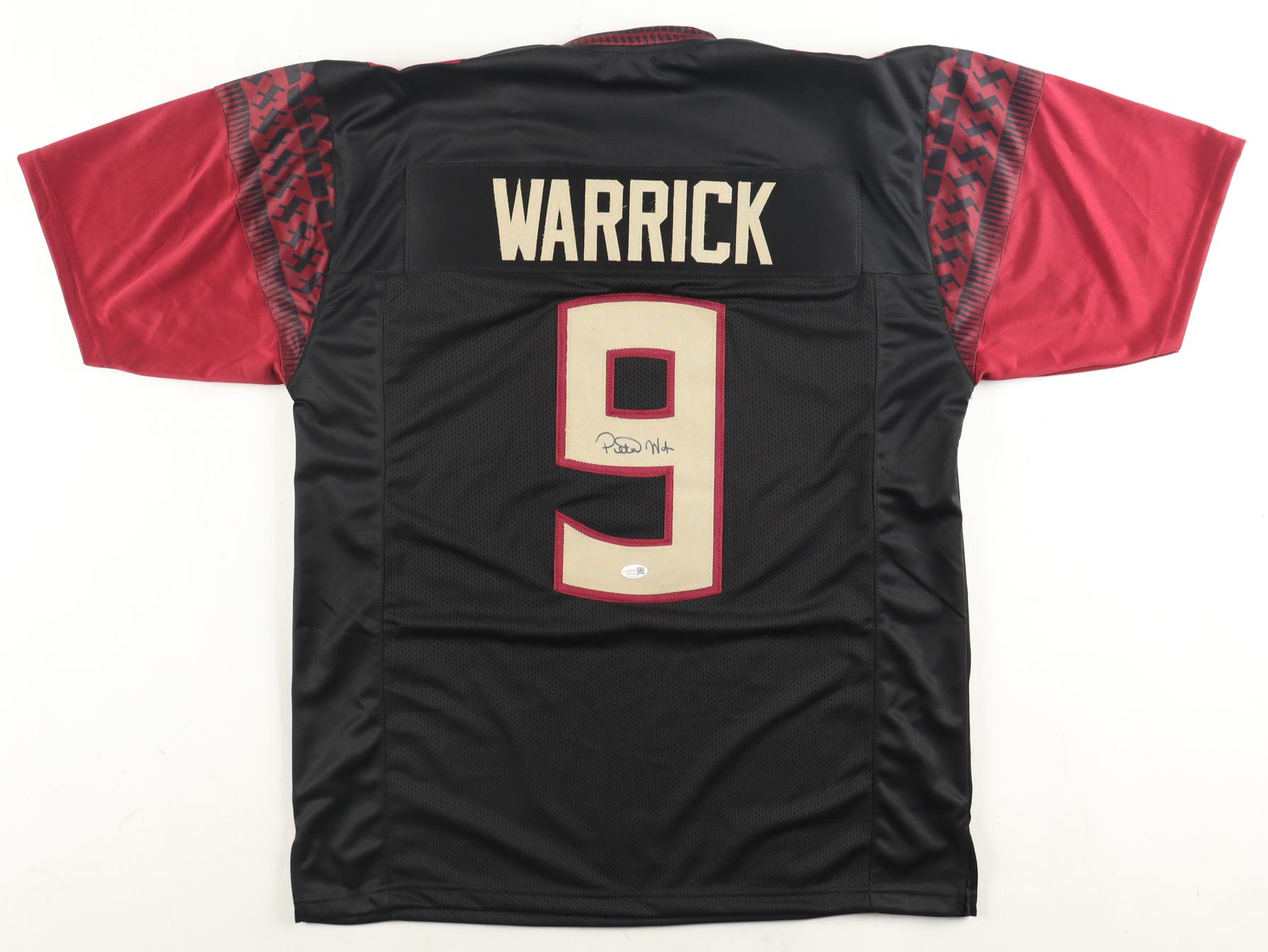 Custom jersey. Everything is sewn on, size XL. Has been hand-signed by Peter Warrick.