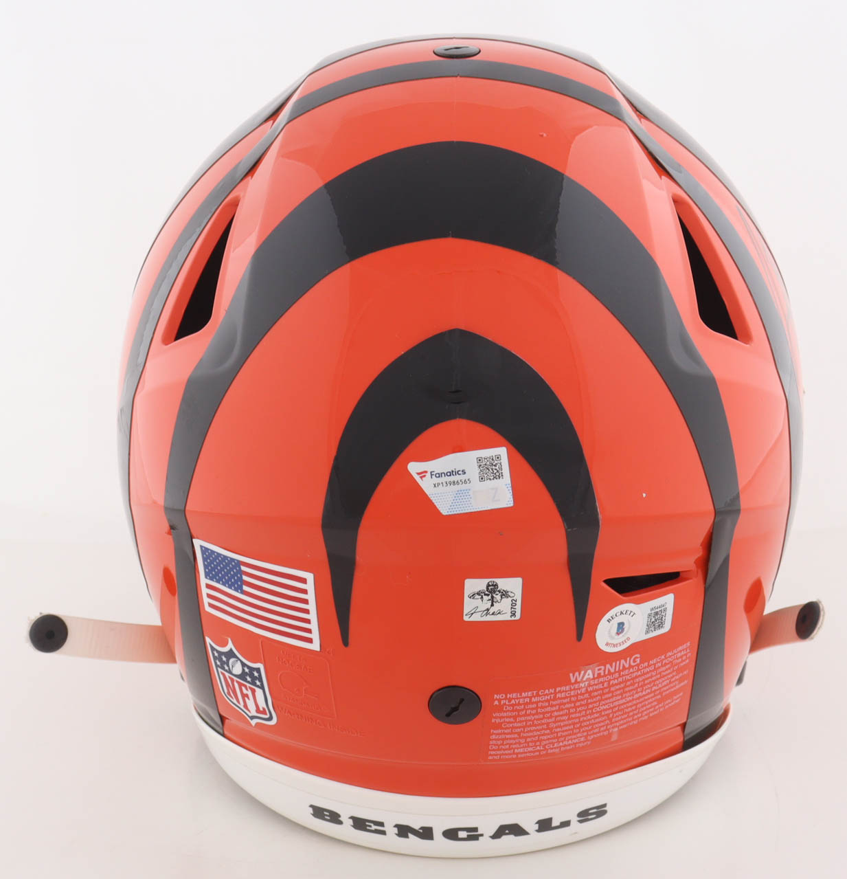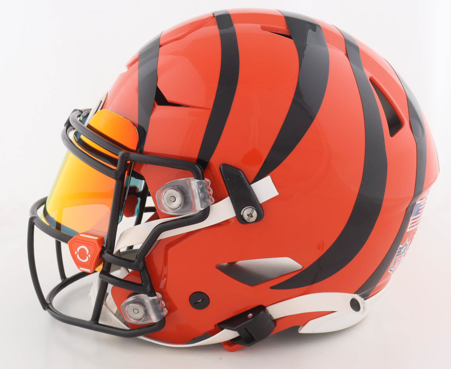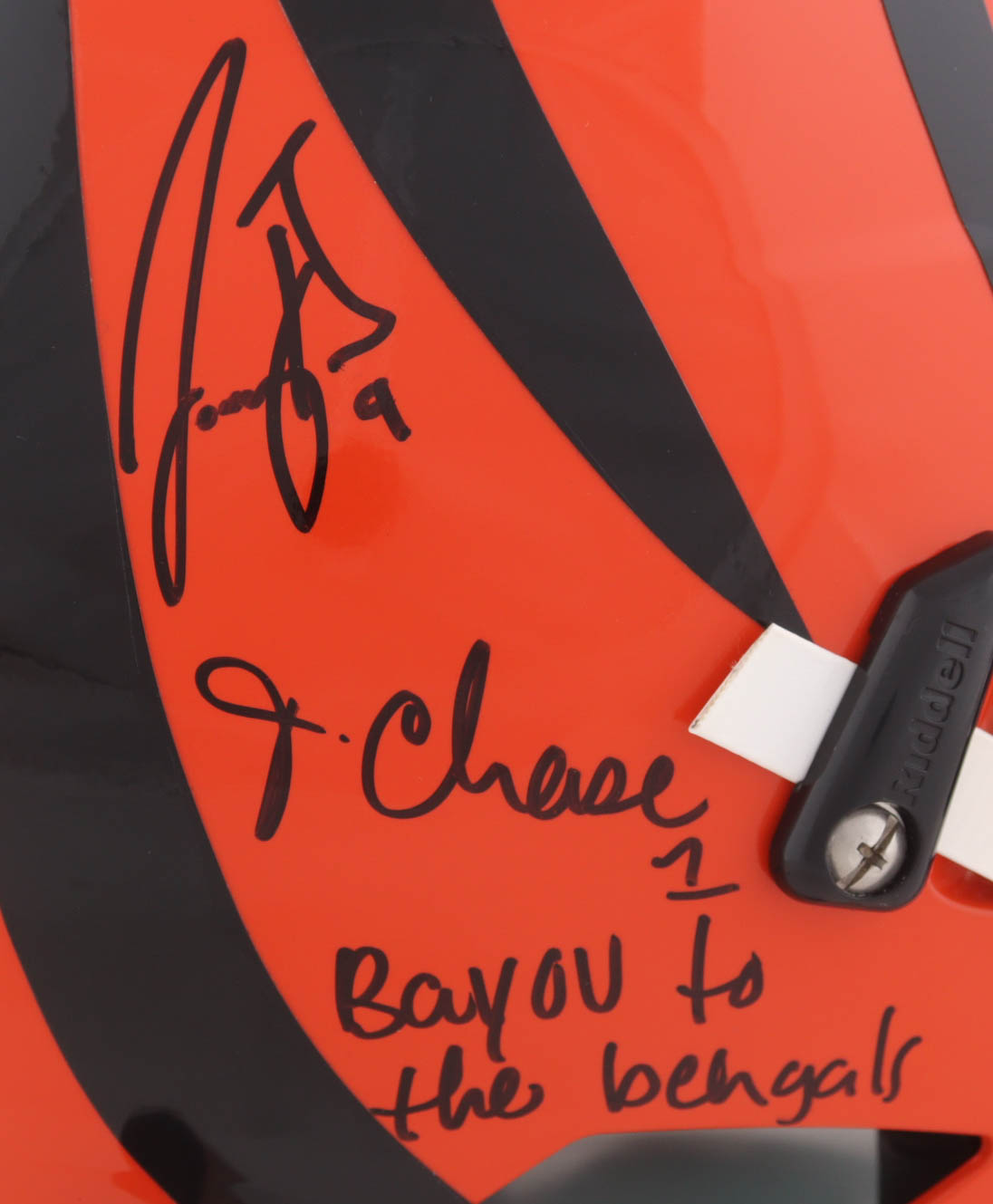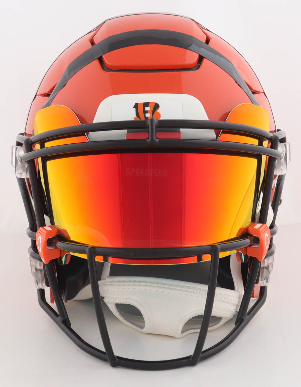 Riddell Cincinnati Bengals Full-Size Authentic On-Field speed flex helmet. Hand-signed and inscribed by Joe Burrow and Ja'Marr Chase. Custom visor is included with the helmet.