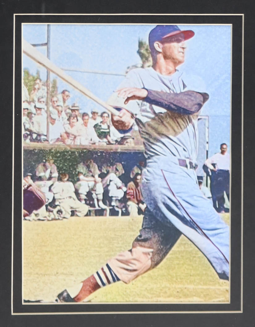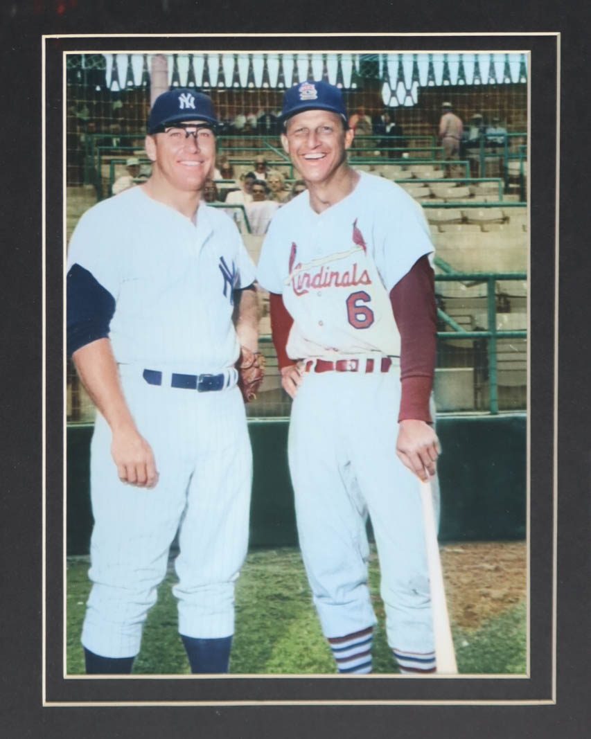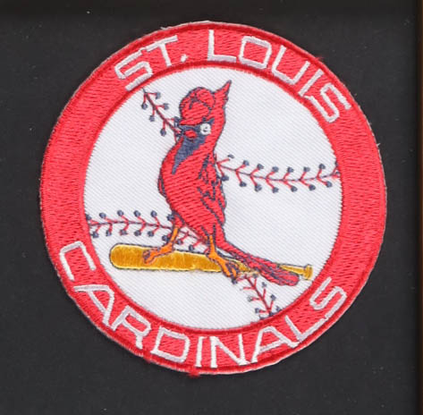 Custom frame display measures approximately 32" x 36" in size and features a jersey and a cut that has been hand-signed by Stan Musial (D. 2013, HOF). The display also includes a jersey and a World Series pin, (2) 8" x 10" photos and (2) cloth team logo patches.