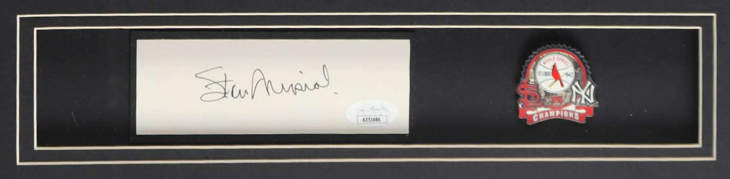 Stan Musial Signed Custom Framed Cut Display with Jersey & World Series Pin (PSA)