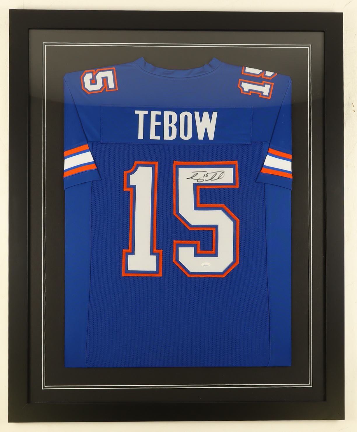 Custom frame measures 35" x 43" in size. Features a jersey that has been hand-signed by Tim Tebow.