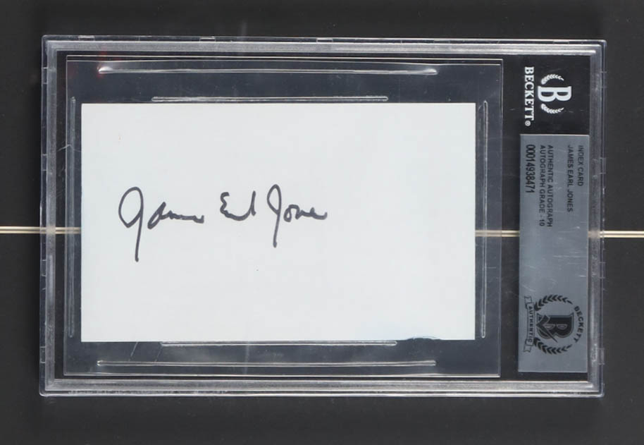 Custom frame measures 25" x 36" in size and features a cut that has been signed by James Earl Jones. Display also include a vintage 1977 Darth Vader poster. please refer to photos regarding the condition of the item.