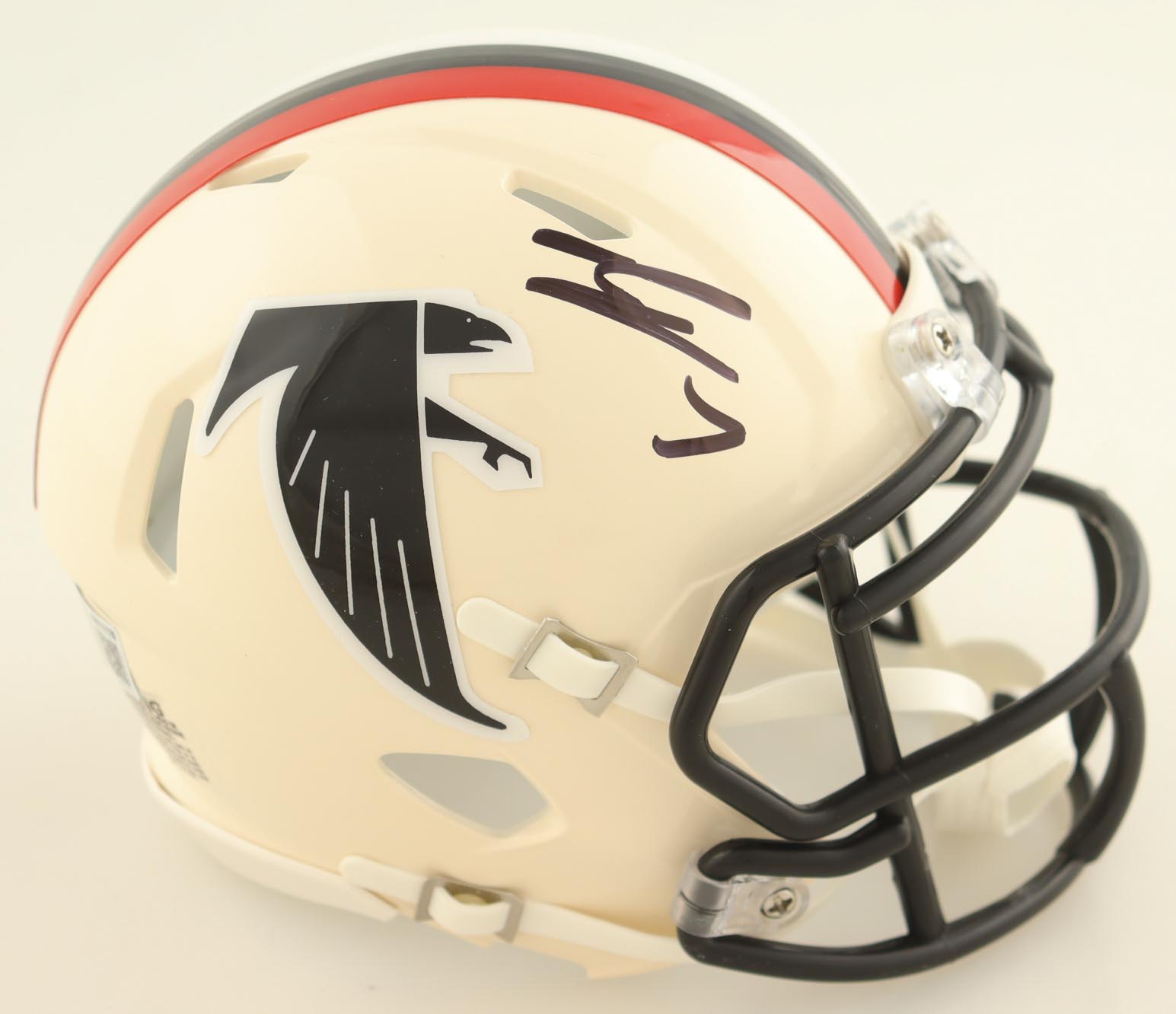 Riddell Atlanta Falcons Retro Alternate speed mini helmet has been hand-signed by Bijan Robinson.