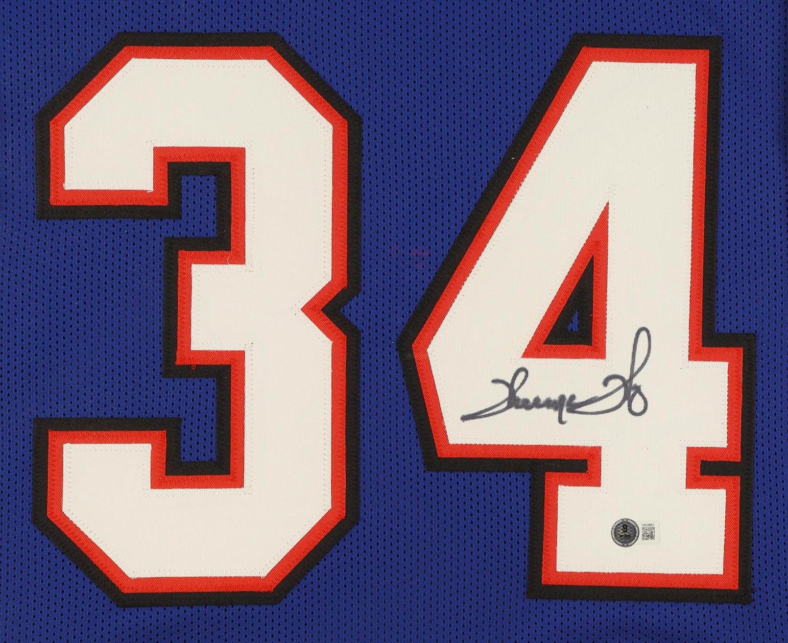 Custom frame measures 35" x 43" in size and features a jersey that has been hand-signed by Thurman Thomas (HOF).