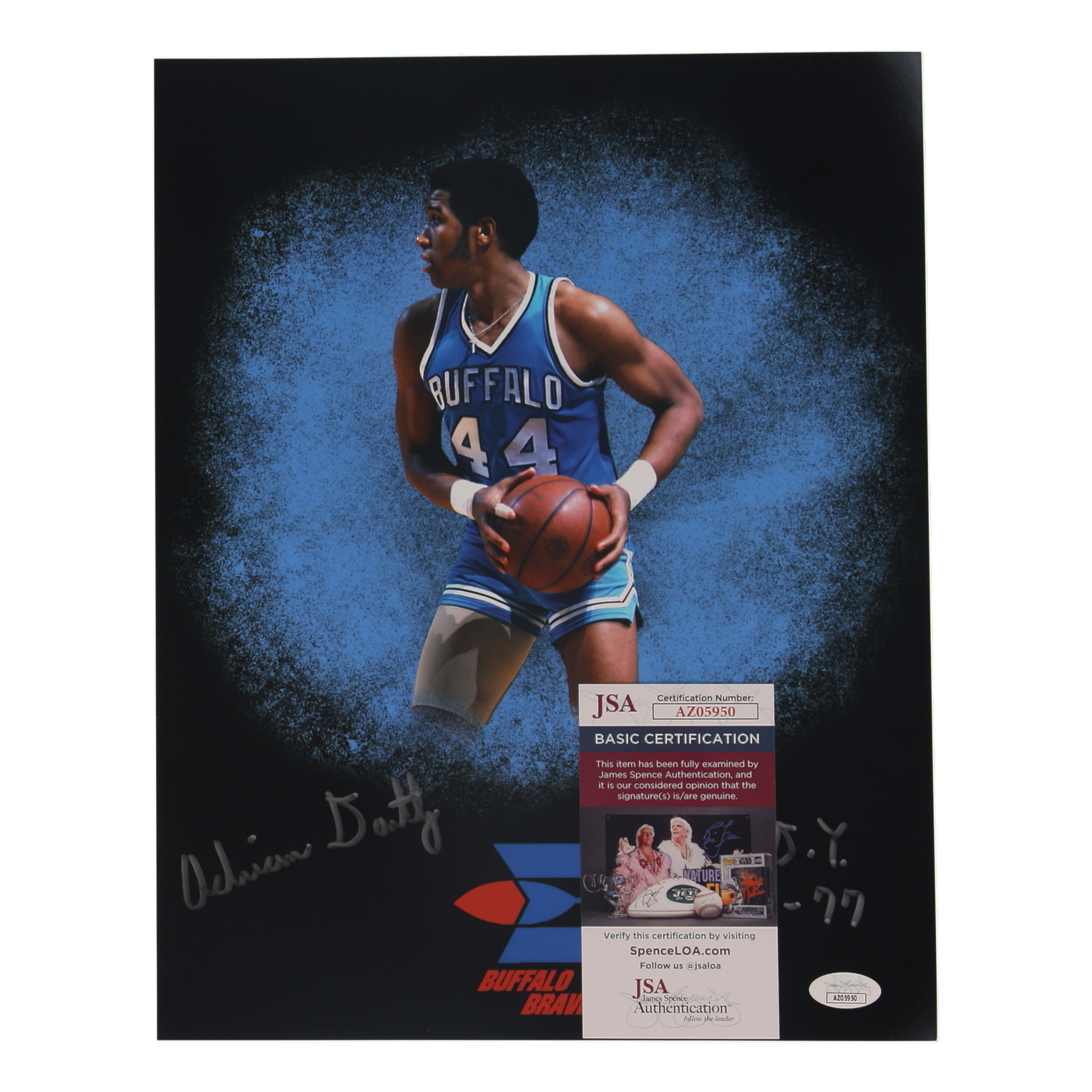 Photo measures 11" x 14" in size. Hand-signed by Adrian Dantley (Buffalo Braves, HOF).
