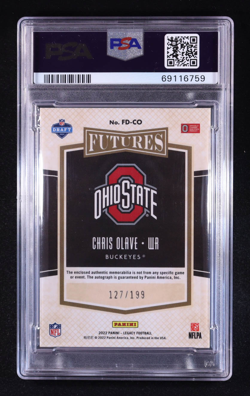Chris Olave 2022 Panini Legacy Futures Dual Patch Autographs #10 RC #127/199 (PSA 8 | Autograph Graded Authentic)