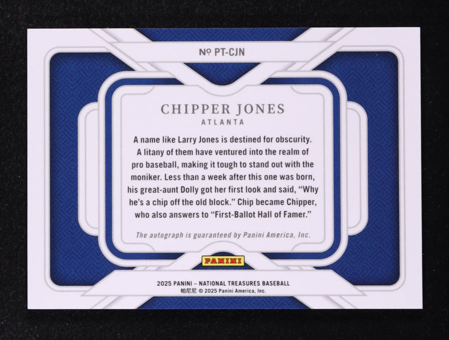 Chipper Jones 2025 Panini National Treasures Personalized Treasures Autographs #18 #54/75