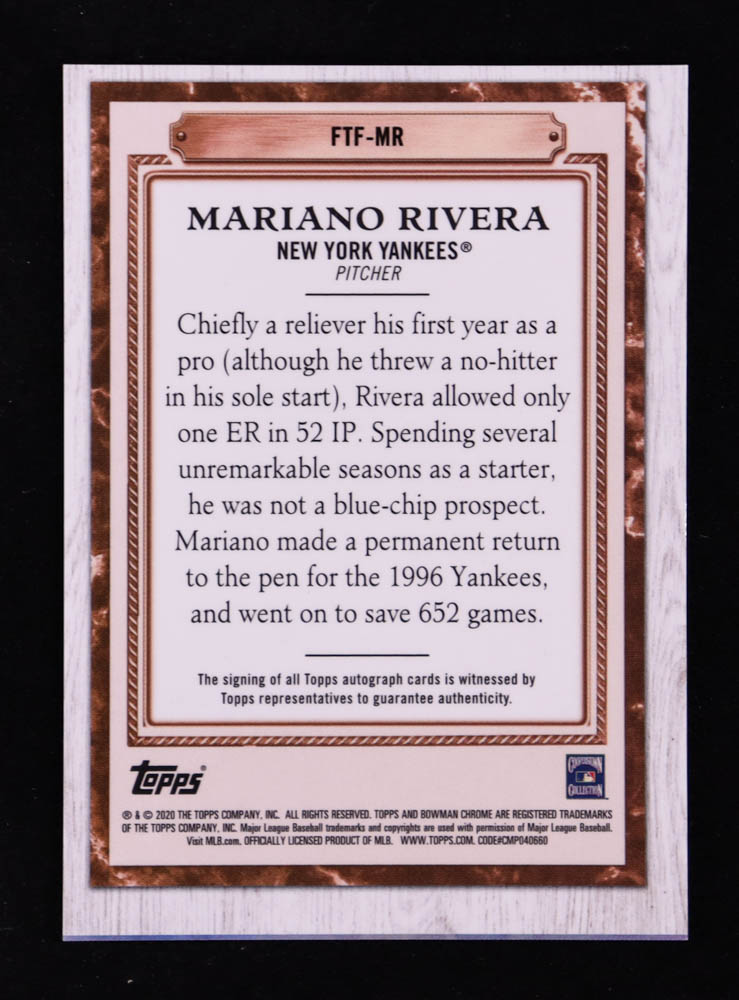 Mariano Rivera 2020 Bowman Chrome Farm to Fame Autographs #FTFMR