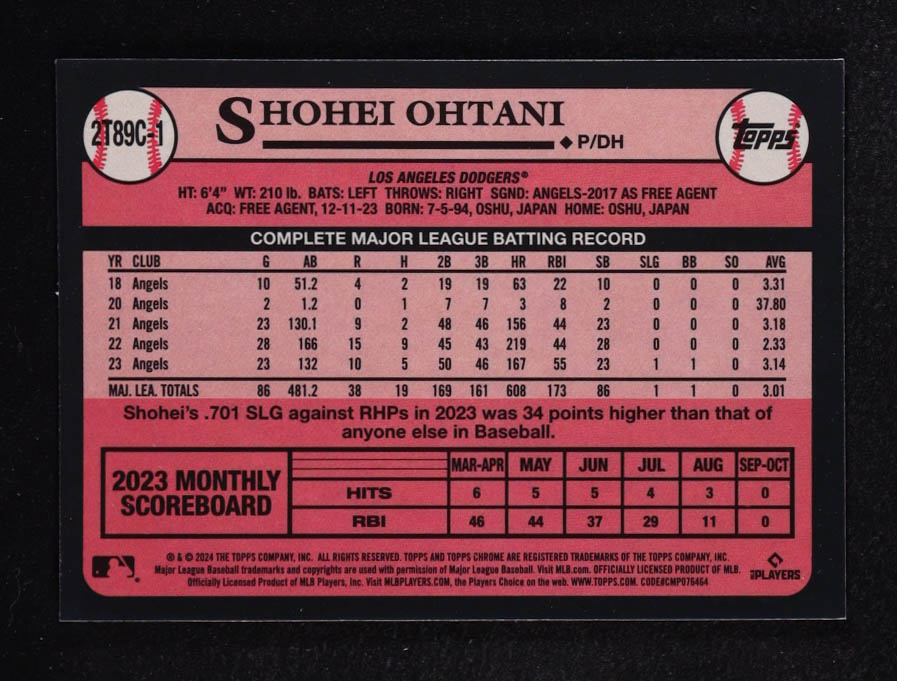 Shohei Ohtani 2024 Topps '89 Topps Silver Pack Chrome #2T89C1