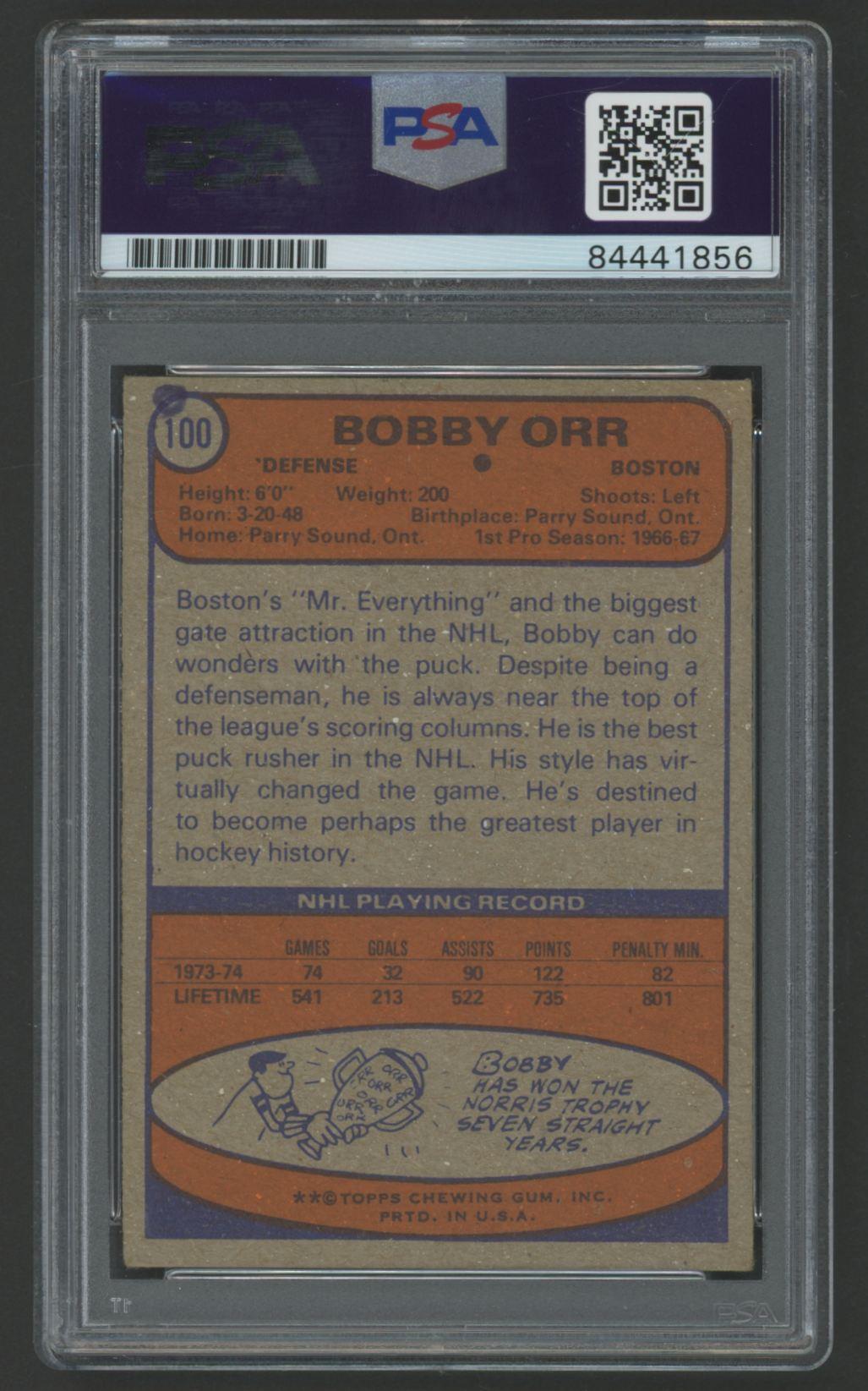 Bobby Orr Signed 1974-75 Topps #100 (PSA)