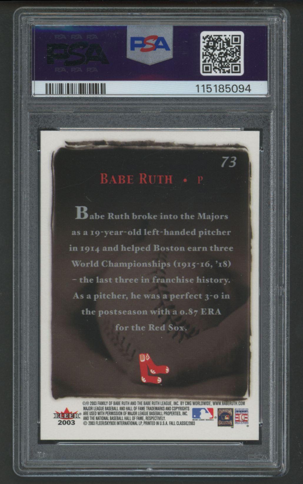 Babe Ruth 2003 Fleer Fall Classics Red Sox #73 (PSA 10)