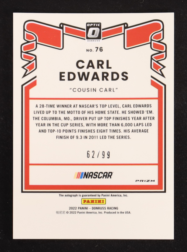 Carl Edwards 2022 Donruss Optic Signatures Holo #76 RETRO #62/99