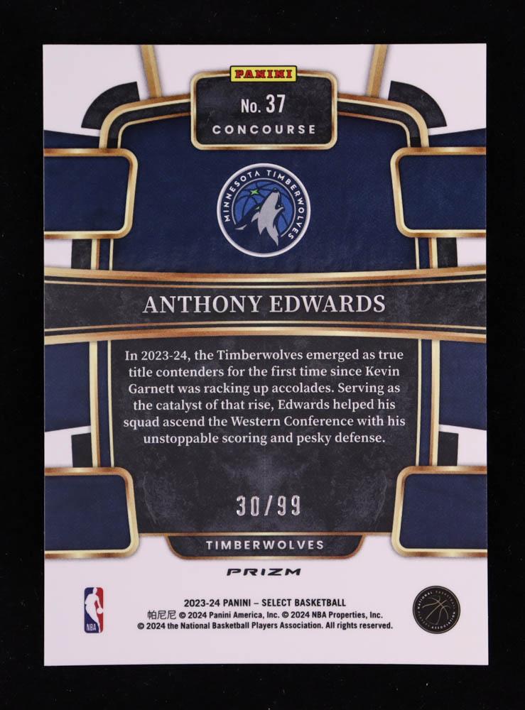 Anthony Edwards 2023-24 Select Prizms Blue Tectonic #37 #30/99