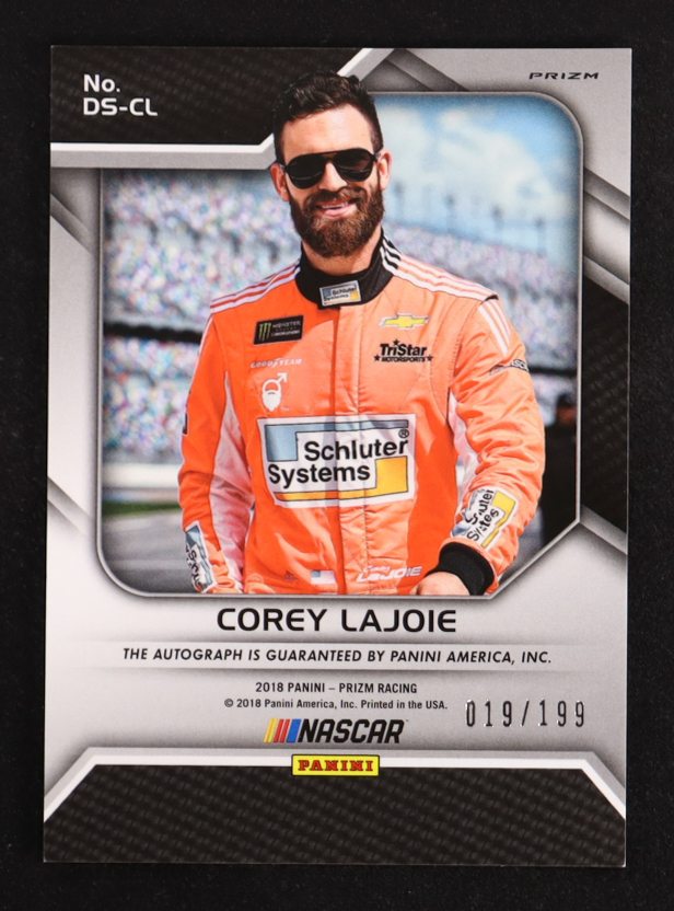 Corey LaJoie 2018 Panini Prizm Autographs Prizms Red White and Blue #6 #019/199