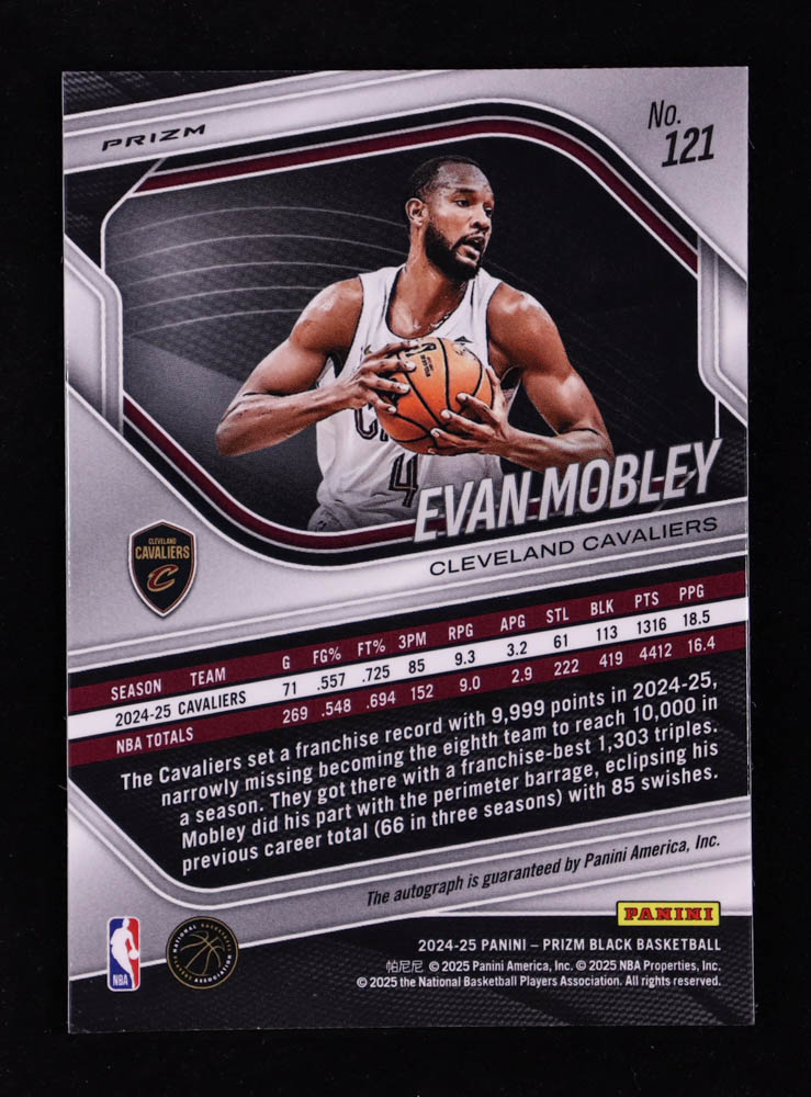 Evan Mobley 2024-25 Panini Prizm Black Autographs Prizms Silver #121